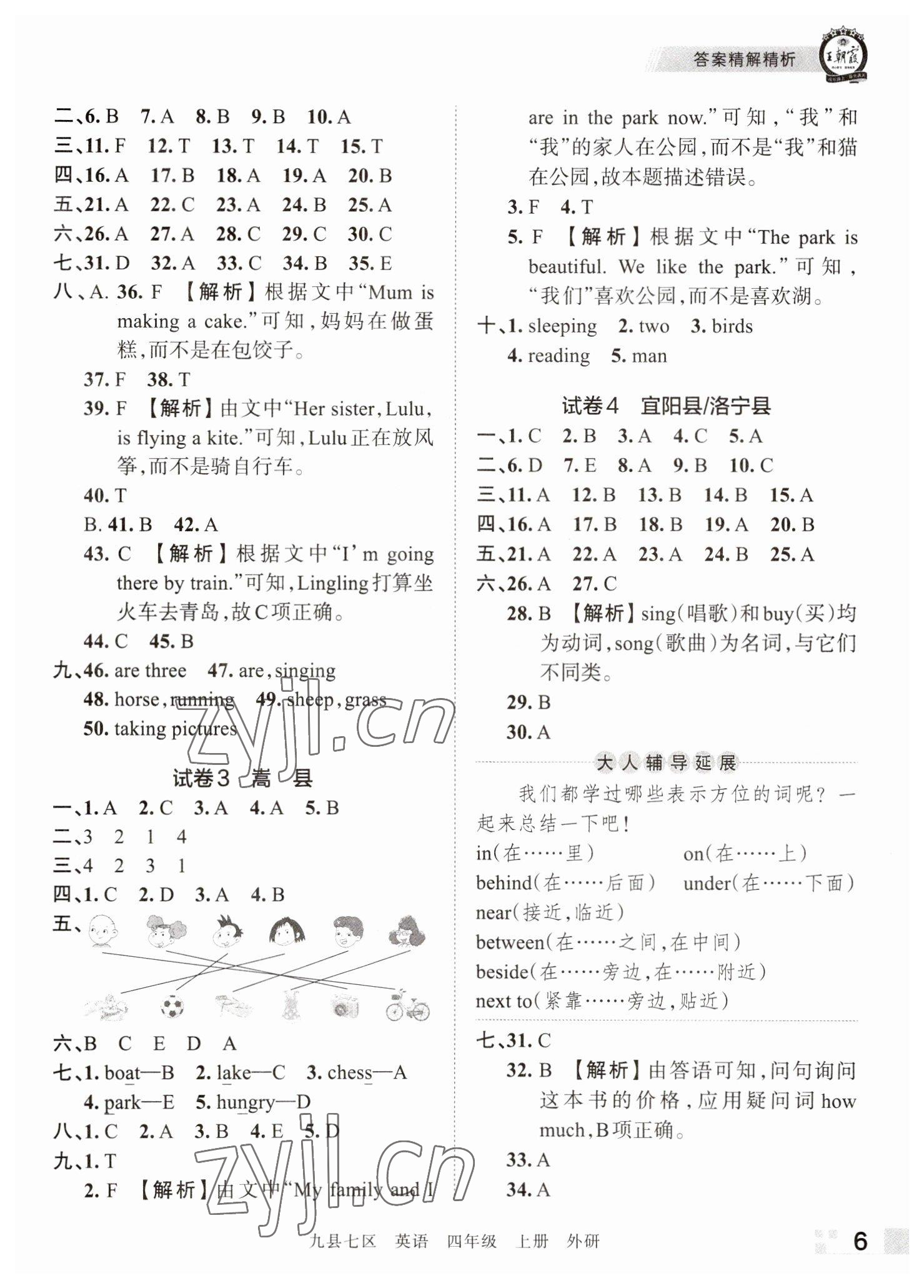 注:目前有些书本章节名称可能整理的还不是很完善,但都是按照顺序排列的,请同学们按照顺序仔细查找。练习册 2022年王朝霞各地期末试卷精选四年级英语上册外研版洛阳专版 答案主要是用来给同学们做完题方便对答案用的,请勿直接抄袭。