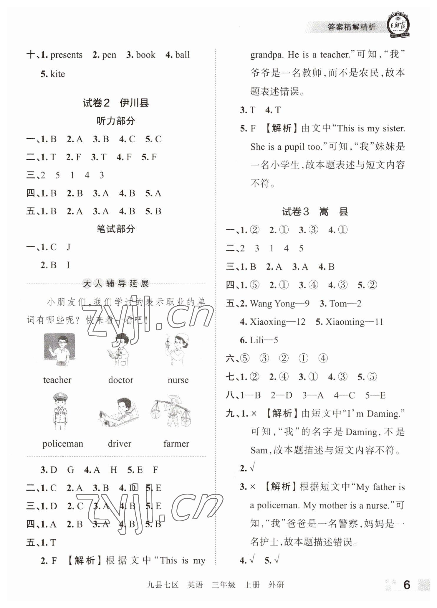 注:目前有些书本章节名称可能整理的还不是很完善,但都是按照顺序排列的,请同学们按照顺序仔细查找。练习册 2022年王朝霞各地期末试卷精选三年级英语上册外研版洛阳专版 答案主要是用来给同学们做完题方便对答案用的,请勿直接抄袭。