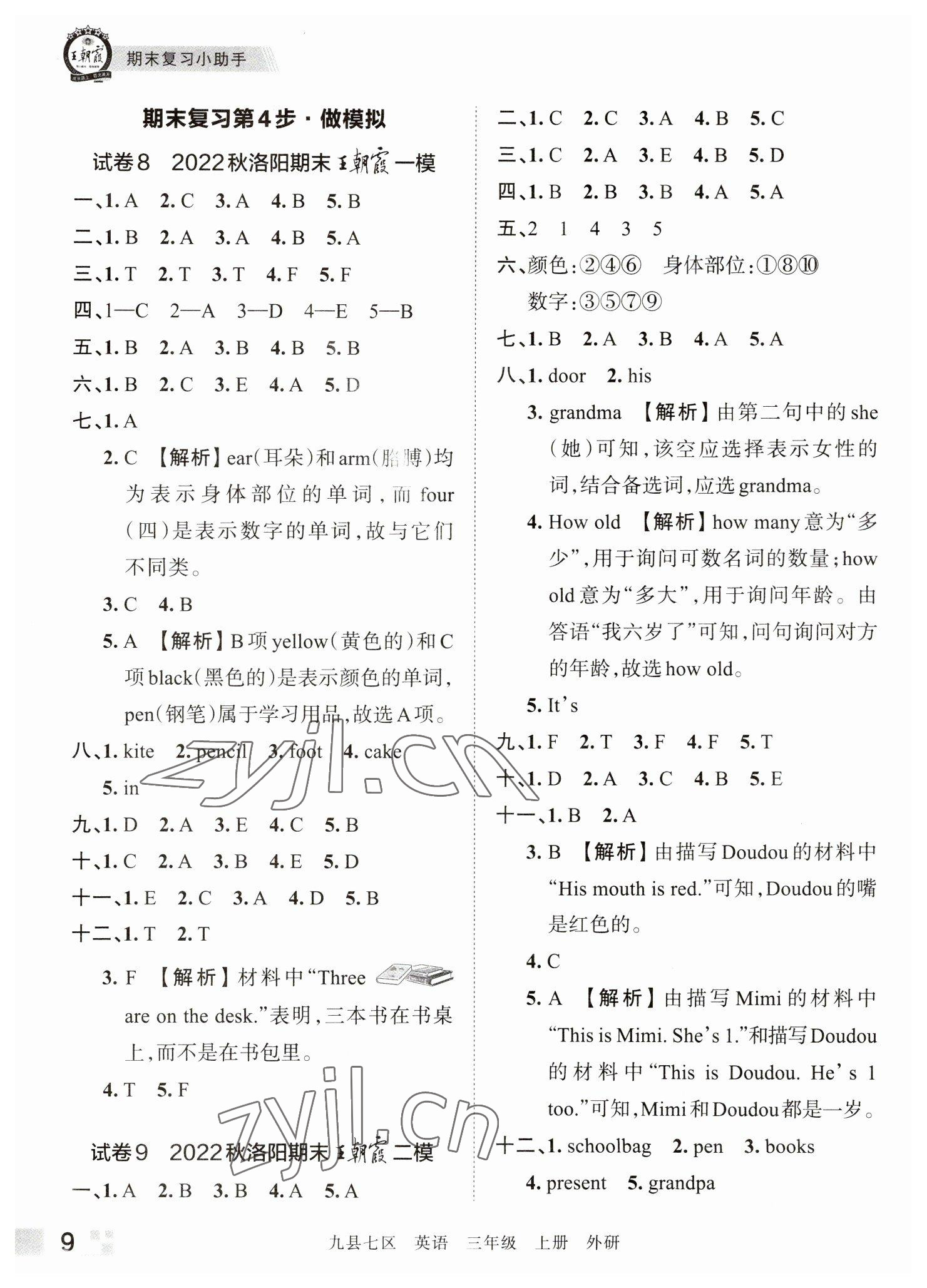 注:目前有些书本章节名称可能整理的还不是很完善,但都是按照顺序排列的,请同学们按照顺序仔细查找。练习册 2022年王朝霞各地期末试卷精选三年级英语上册外研版洛阳专版 答案主要是用来给同学们做完题方便对答案用的,请勿直接抄袭。