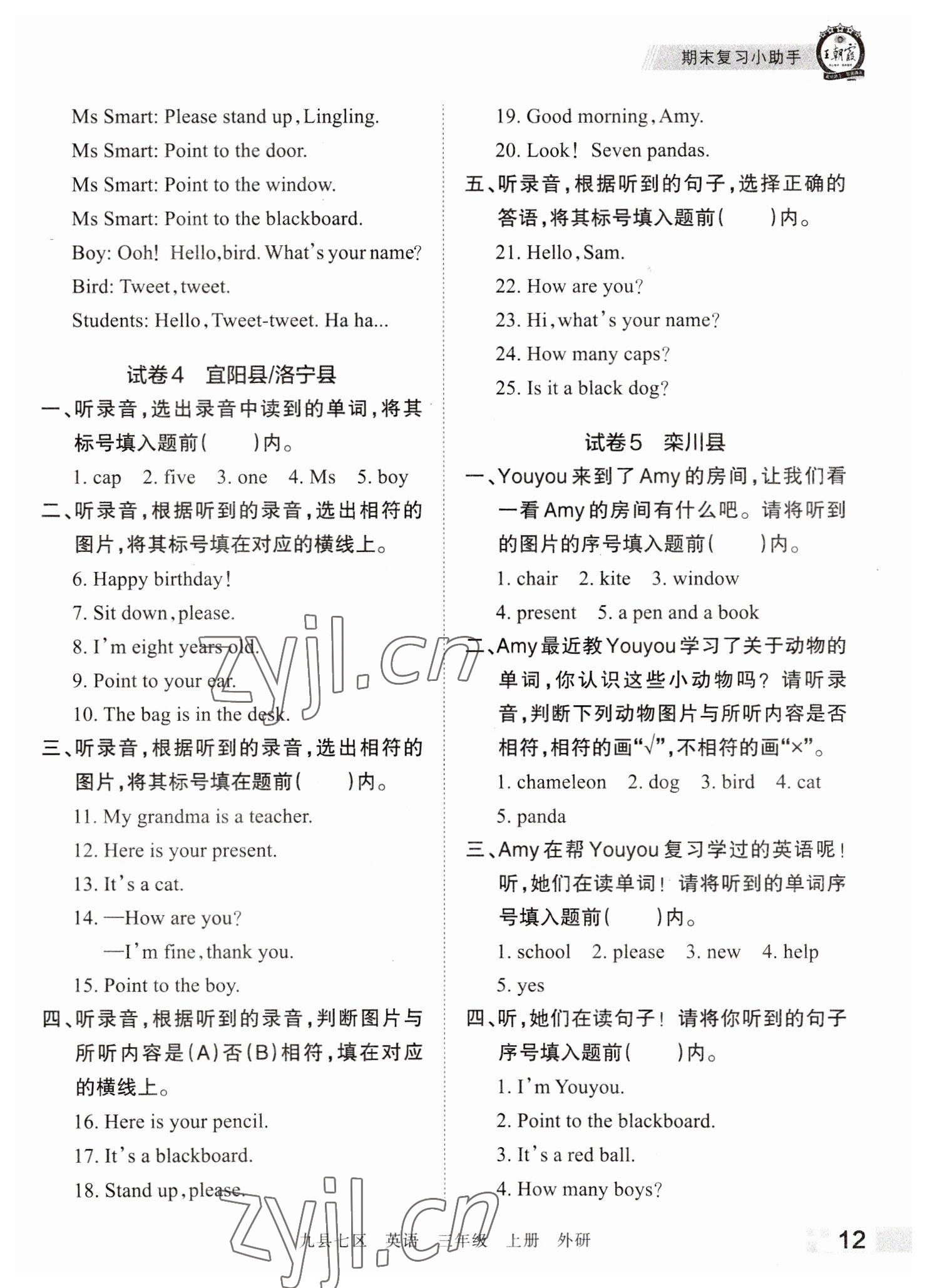 注:目前有些书本章节名称可能整理的还不是很完善,但都是按照顺序排列的,请同学们按照顺序仔细查找。练习册 2022年王朝霞各地期末试卷精选三年级英语上册外研版洛阳专版 答案主要是用来给同学们做完题方便对答案用的,请勿直接抄袭。