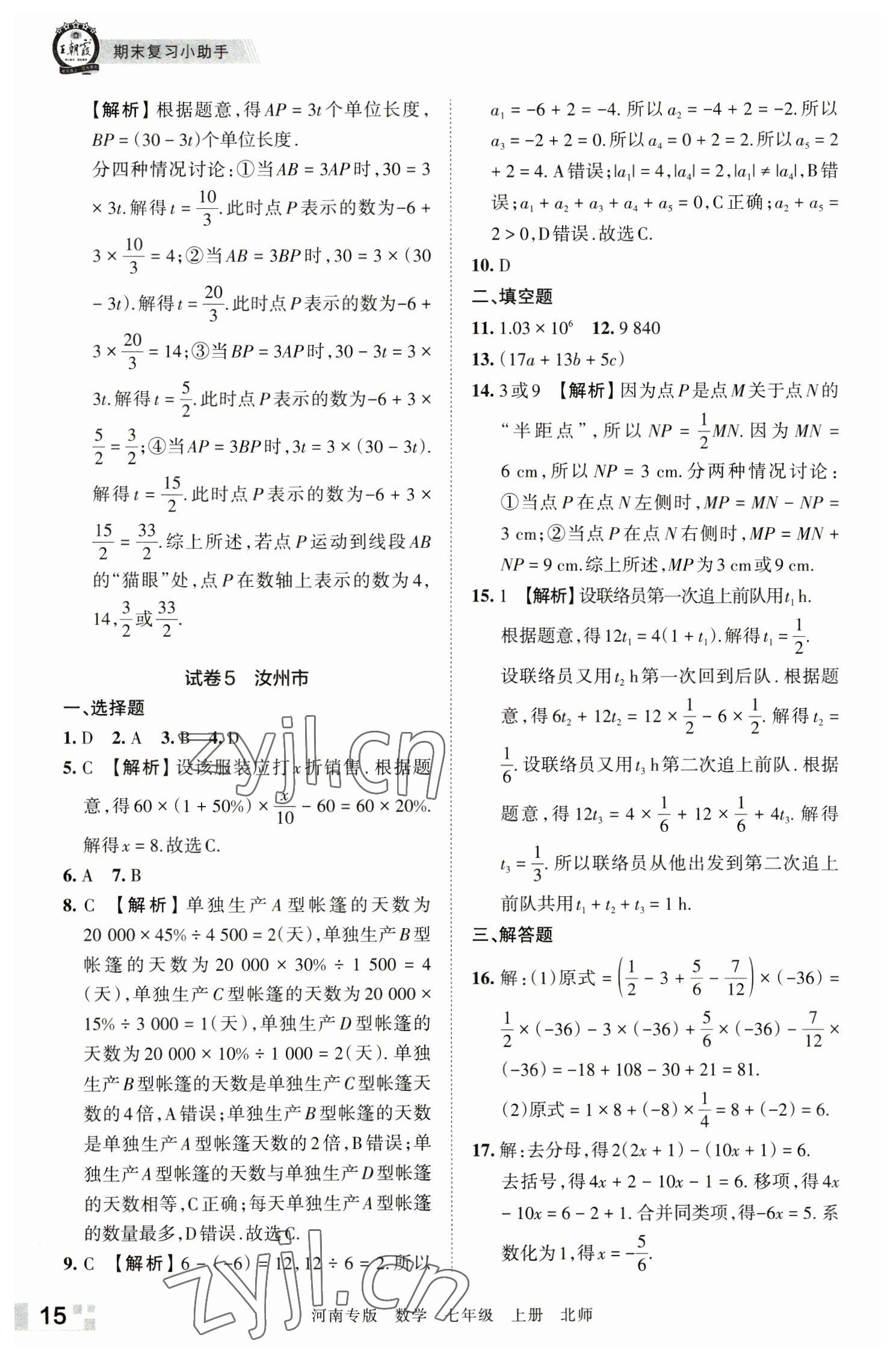 注:目前有些书本章节名称可能整理的还不是很完善,但都是按照顺序排列的,请同学们按照顺序仔细查找。练习册 2022年王朝霞各地期末试卷精选七年级数学上册北师大版河南专版 答案主要是用来给同学们做完题方便对答案用的,请勿直接抄袭。