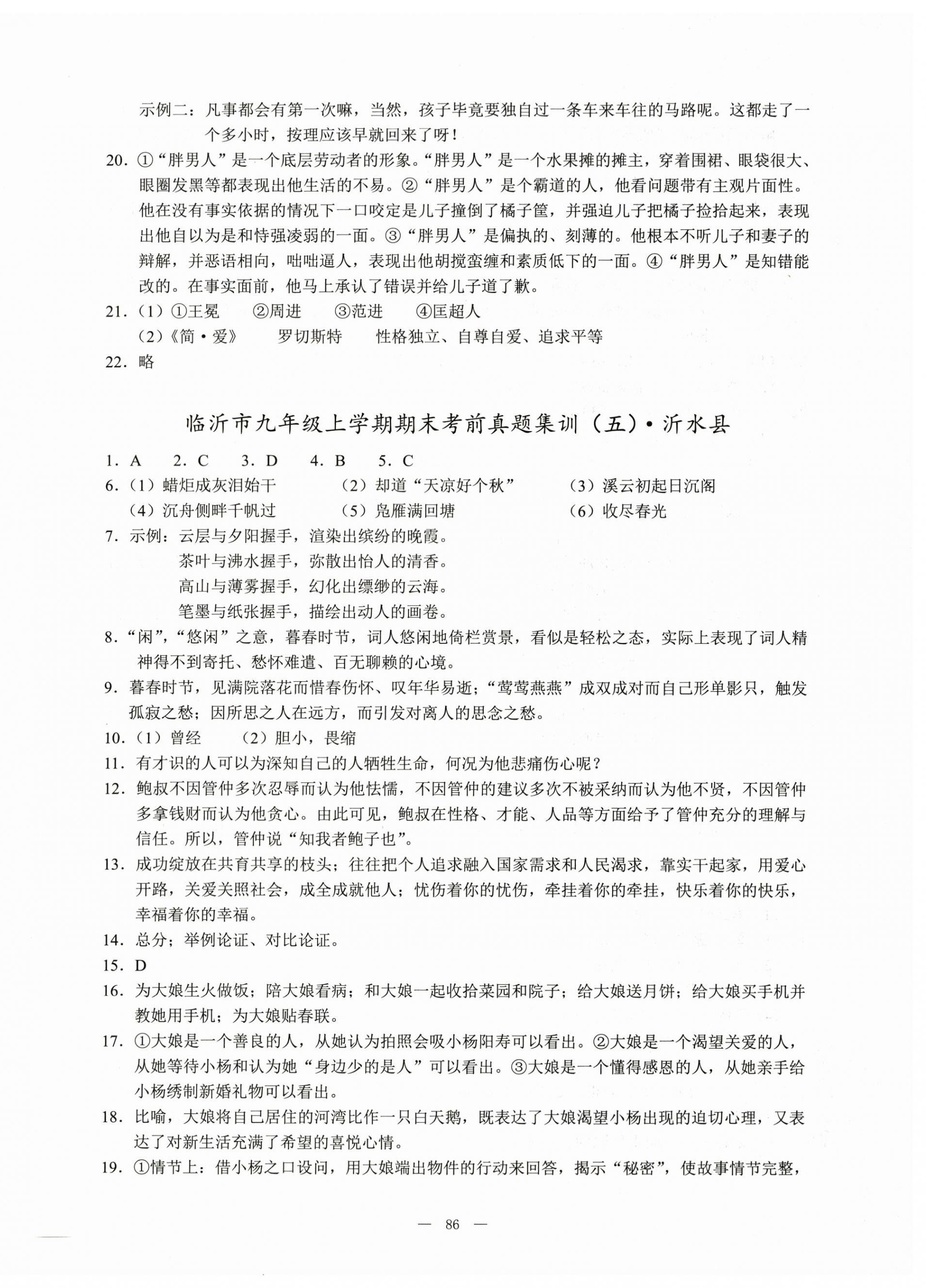 注:目前有些书本章节名称可能整理的还不是很完善,但都是按照顺序排列的,请同学们按照顺序仔细查找。练习册 2022年期末夺冠九年级语文上册人教版临沂专版 答案主要是用来给同学们做完题方便对答案用的,请勿直接抄袭。