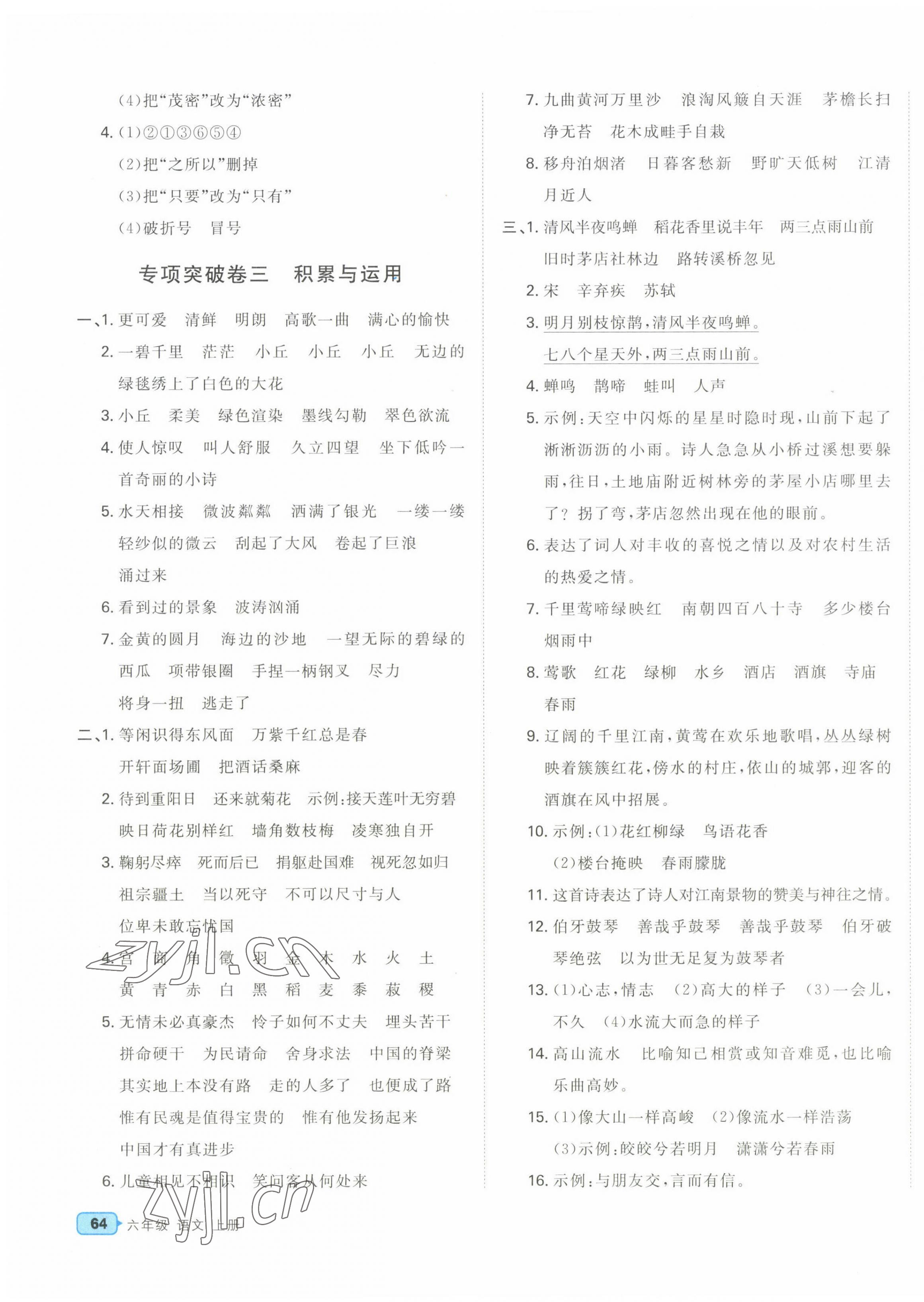 注:目前有些书本章节名称可能整理的还不是很完善,但都是按照顺序排列的,请同学们按照顺序仔细查找。练习册 2022年名校期末六年级语文上册人教版 答案主要是用来给同学们做完题方便对答案用的,请勿直接抄袭。