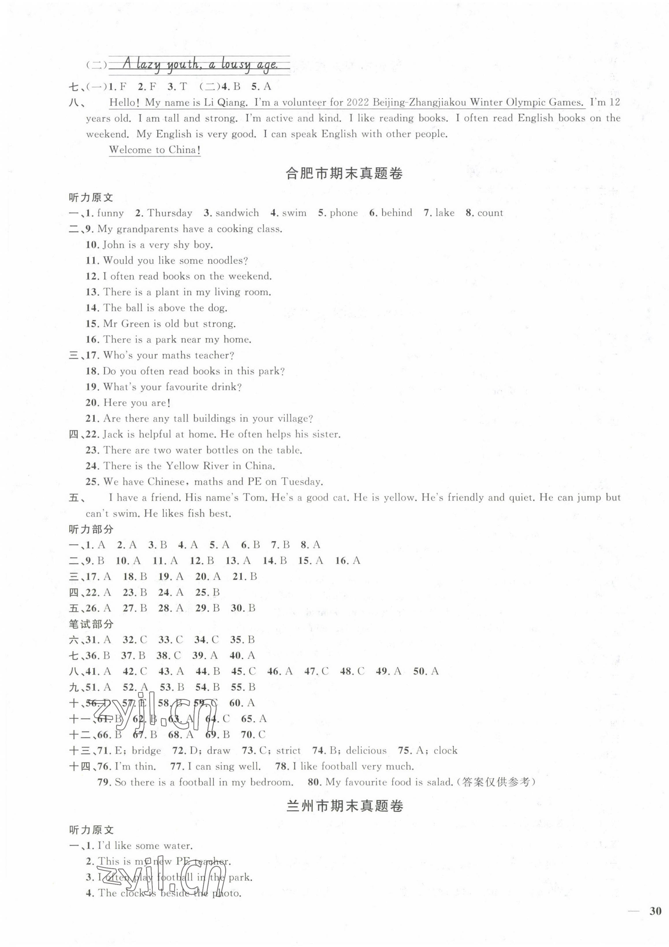 注:目前有些书本章节名称可能整理的还不是很完善,但都是按照顺序排列的,请同学们按照顺序仔细查找。练习册 2022年阳光同学期末复习15天冲刺100分五年级英语上册人教PEP版 答案主要是用来给同学们做完题方便对答案用的,请勿直接抄袭。