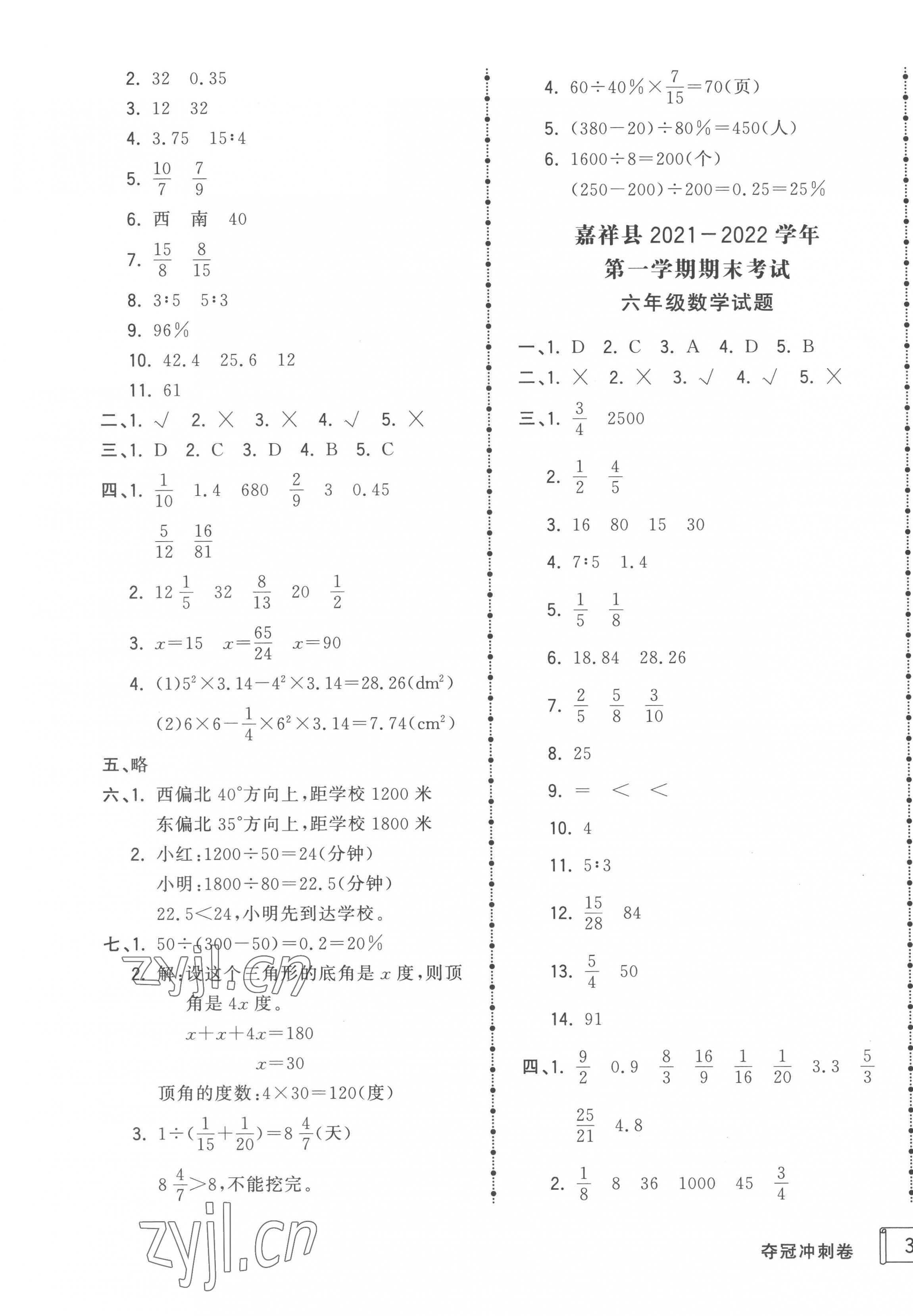 注:目前有些书本章节名称可能整理的还不是很完善,但都是按照顺序排列的,请同学们按照顺序仔细查找。练习册 2022年夺冠冲刺卷六年级数学上册人教版济宁专版 答案主要是用来给同学们做完题方便对答案用的,请勿直接抄袭。