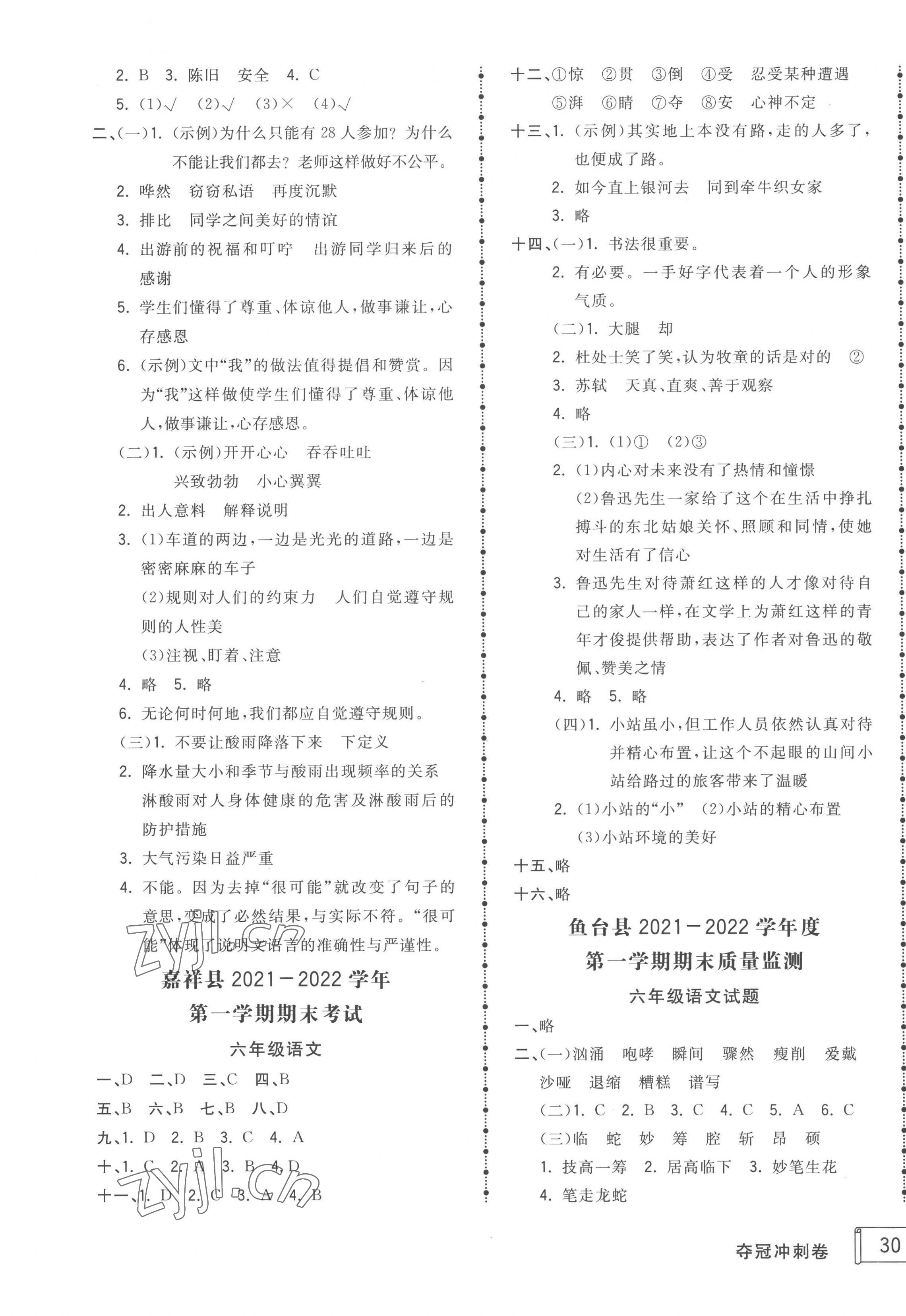 2022年夺冠冲刺卷六年级语文上册人教版济宁专版