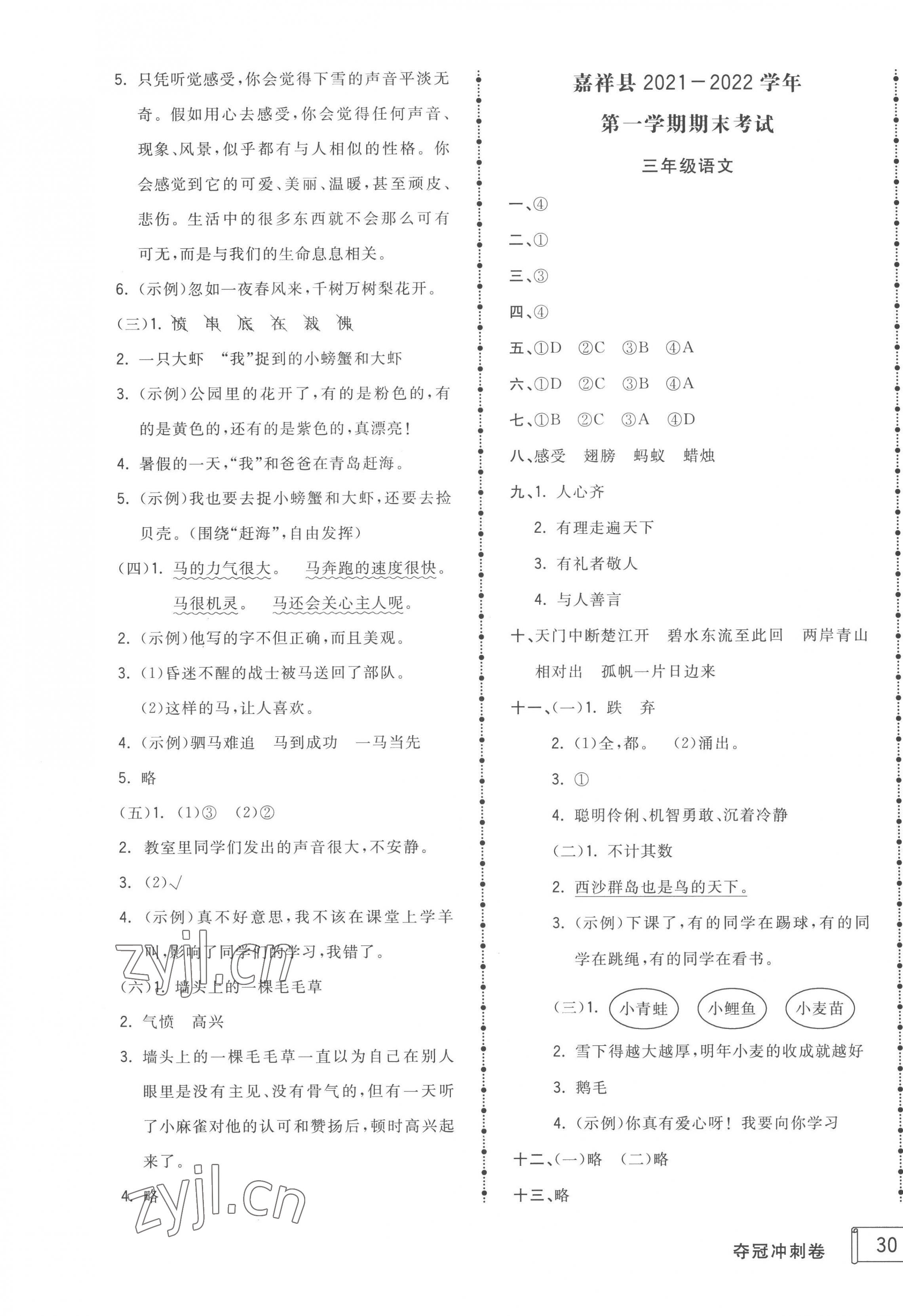 注:目前有些书本章节名称可能整理的还不是很完善,但都是按照顺序排列的,请同学们按照顺序仔细查找。练习册 2022年夺冠冲刺卷三年级语文上册人教版济宁专版 答案主要是用来给同学们做完题方便对答案用的,请勿直接抄袭。