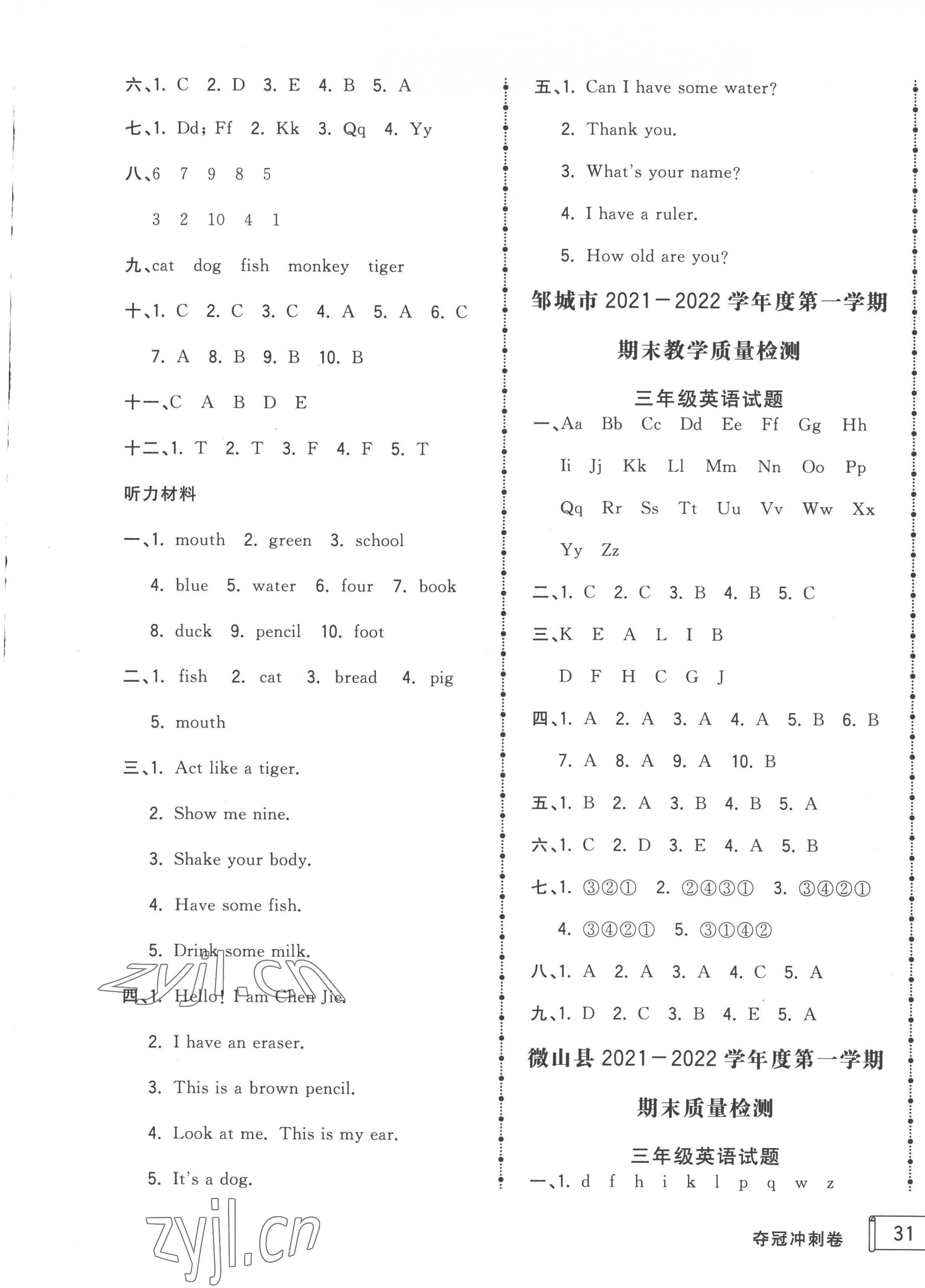 注:目前有些书本章节名称可能整理的还不是很完善,但都是按照顺序排列的,请同学们按照顺序仔细查找。练习册 2022年夺冠冲刺卷三年级英语上册人教版济宁专版 答案主要是用来给同学们做完题方便对答案用的,请勿直接抄袭。