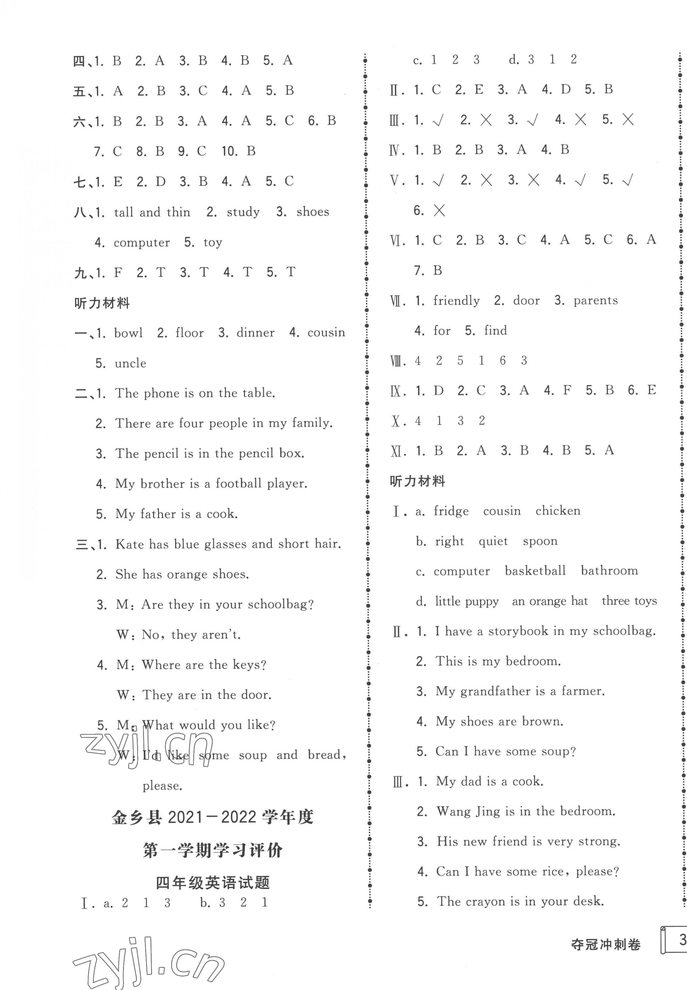 2022年夺冠冲刺卷四年级英语上册人教版济宁专版