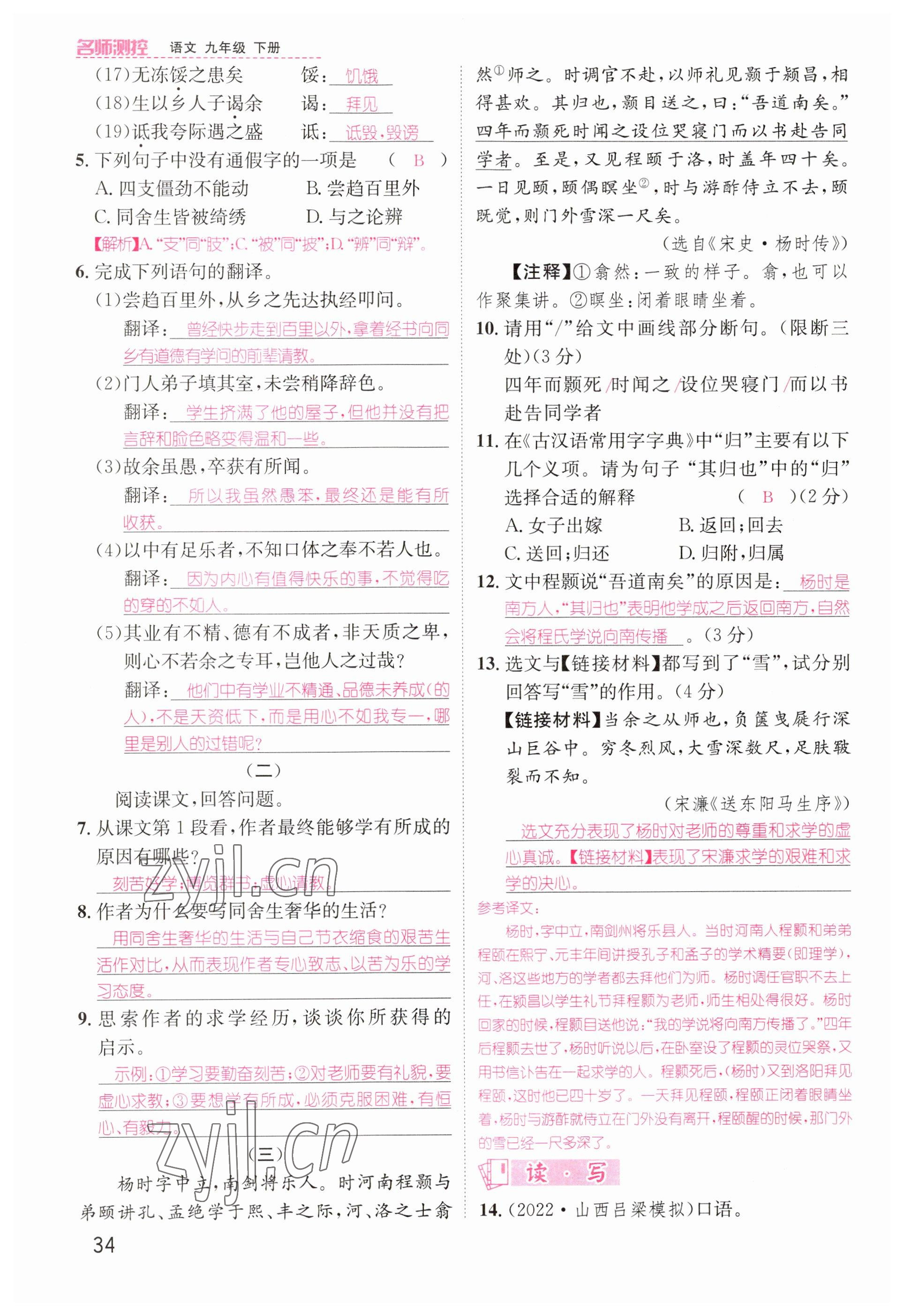 注:目前有些书本章节名称可能整理的还不是很完善,但都是按照顺序排列的,请同学们按照顺序仔细查找。练习册 2023年名师测控九年级语文下册人教版山西专版 答案主要是用来给同学们做完题方便对答案用的,请勿直接抄袭。