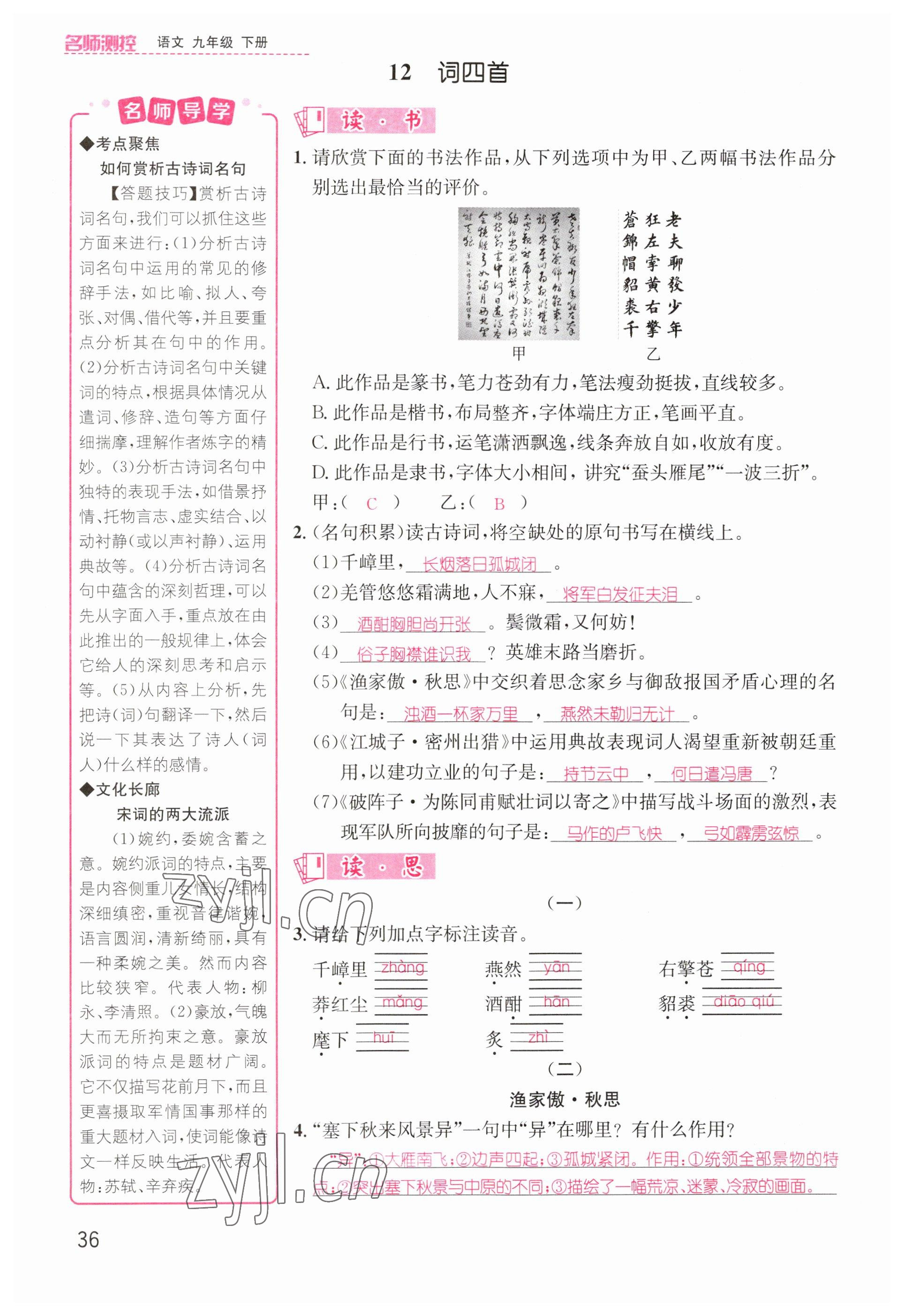 注:目前有些书本章节名称可能整理的还不是很完善,但都是按照顺序排列的,请同学们按照顺序仔细查找。练习册 2023年名师测控九年级语文下册人教版山西专版 答案主要是用来给同学们做完题方便对答案用的,请勿直接抄袭。