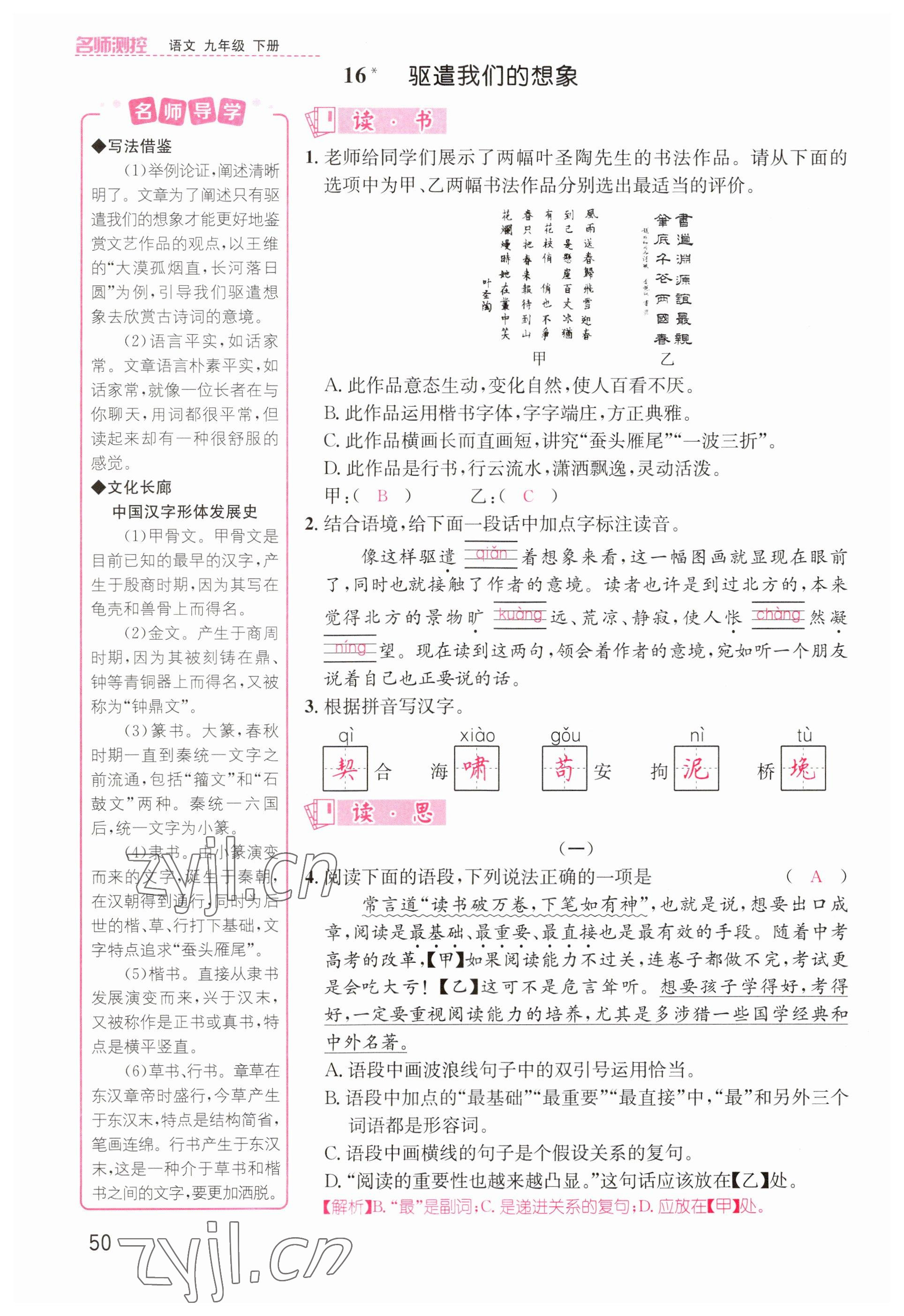 注:目前有些书本章节名称可能整理的还不是很完善,但都是按照顺序排列的,请同学们按照顺序仔细查找。练习册 2023年名师测控九年级语文下册人教版山西专版 答案主要是用来给同学们做完题方便对答案用的,请勿直接抄袭。