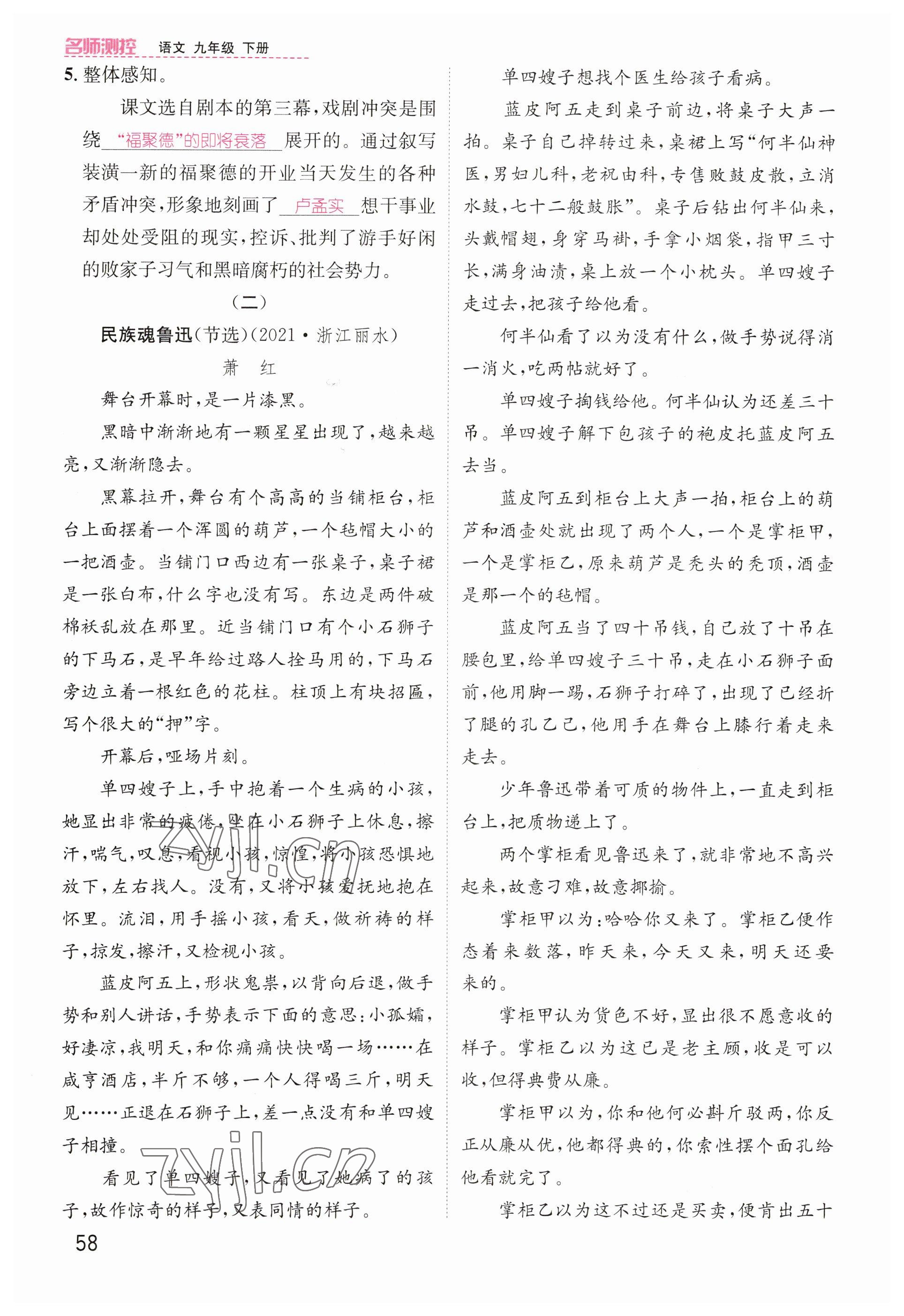 注:目前有些书本章节名称可能整理的还不是很完善,但都是按照顺序排列的,请同学们按照顺序仔细查找。练习册 2023年名师测控九年级语文下册人教版山西专版 答案主要是用来给同学们做完题方便对答案用的,请勿直接抄袭。