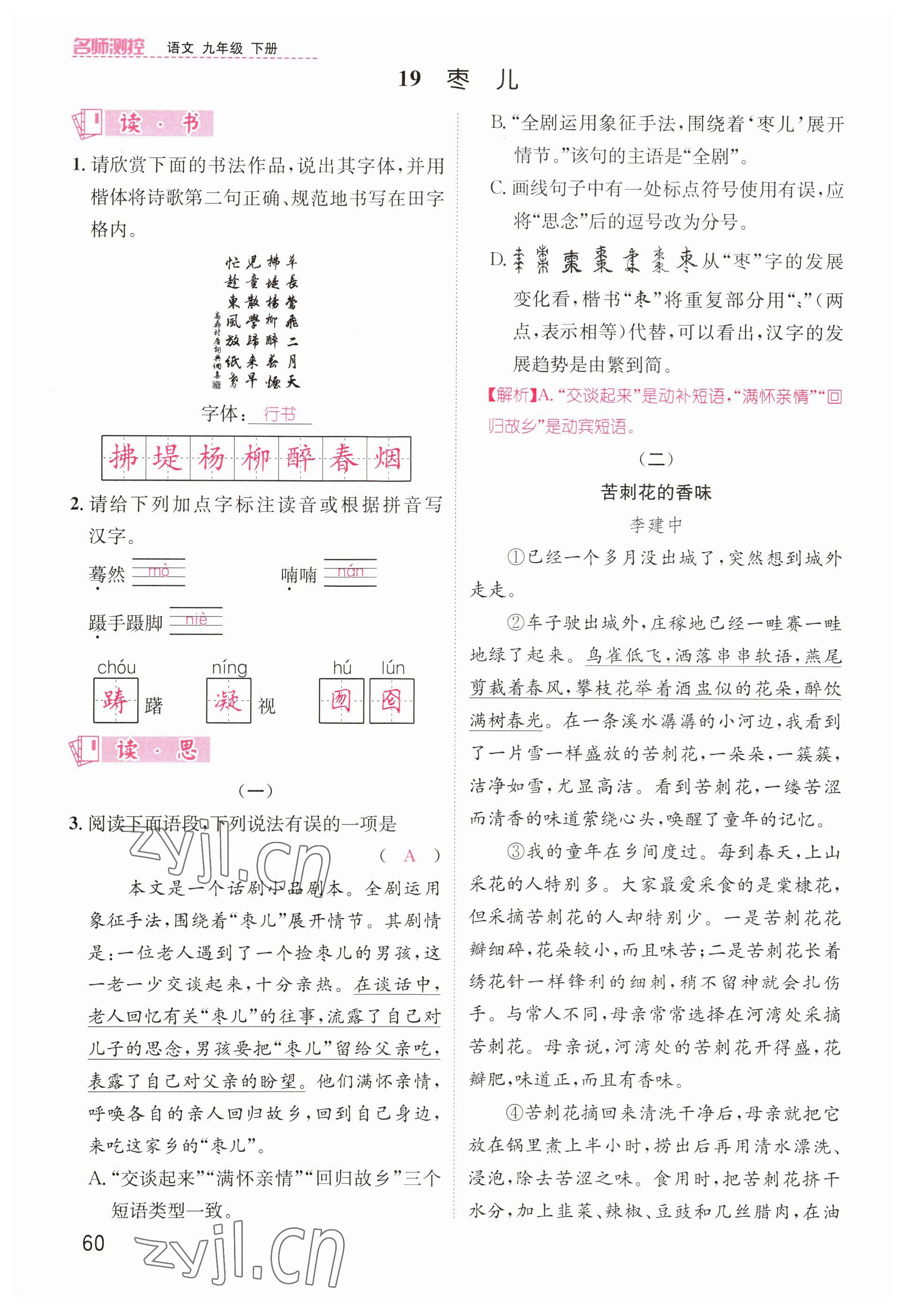 2023年名师测控九年级语文下册人教版山西专版