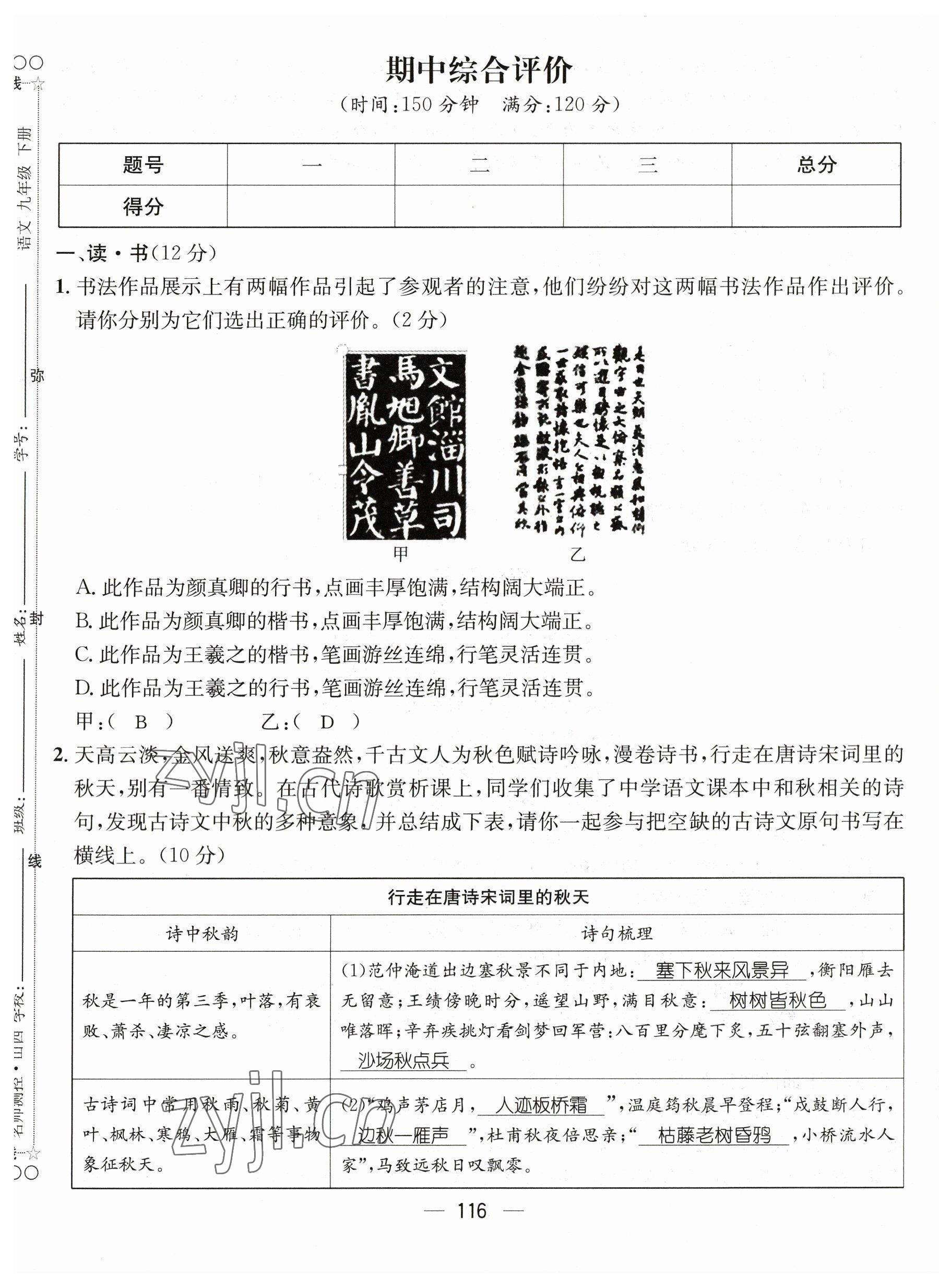 2023年名师测控九年级语文下册人教版山西专版