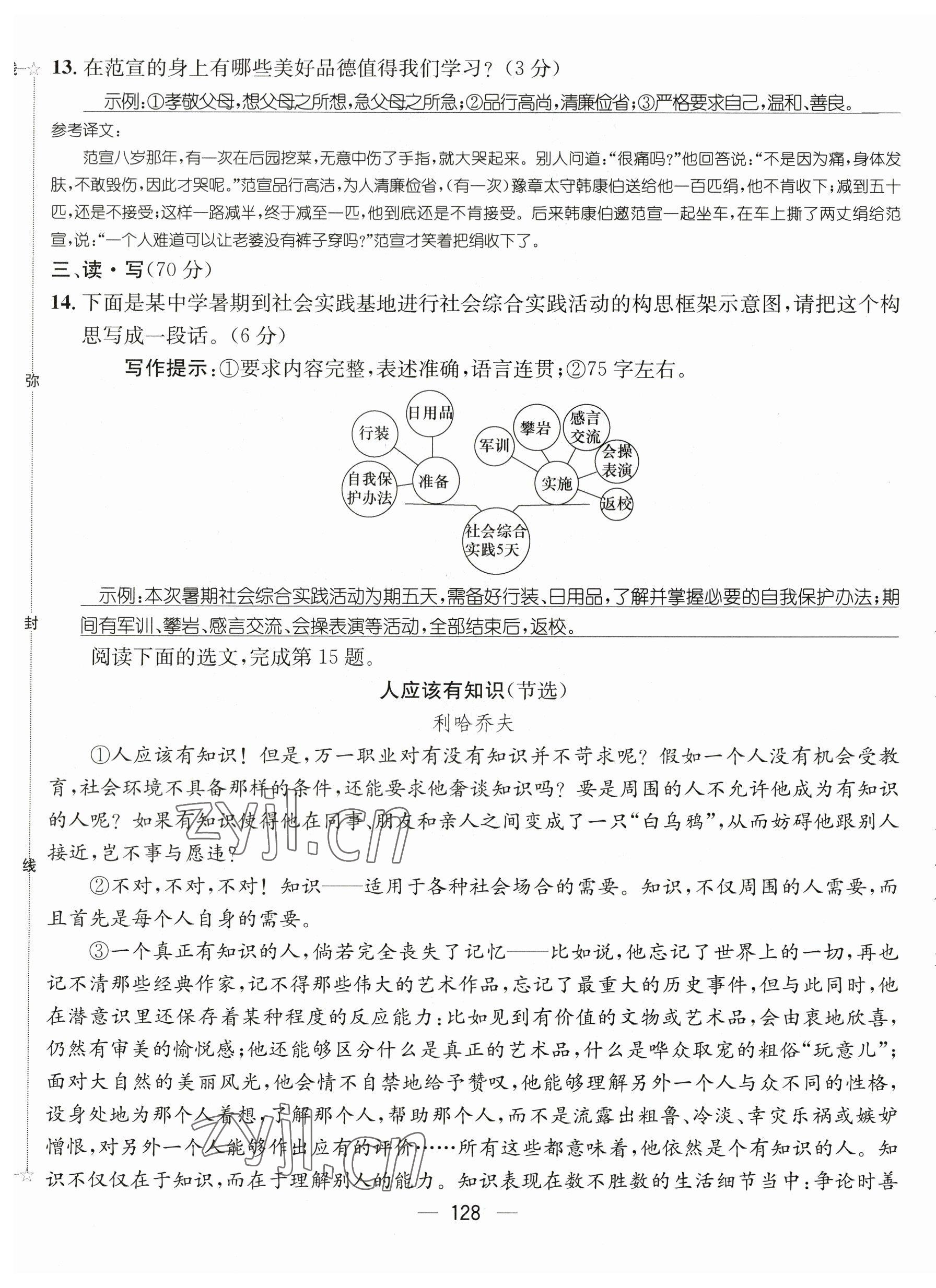 注:目前有些书本章节名称可能整理的还不是很完善,但都是按照顺序排列的,请同学们按照顺序仔细查找。练习册 2023年名师测控九年级语文下册人教版山西专版 答案主要是用来给同学们做完题方便对答案用的,请勿直接抄袭。