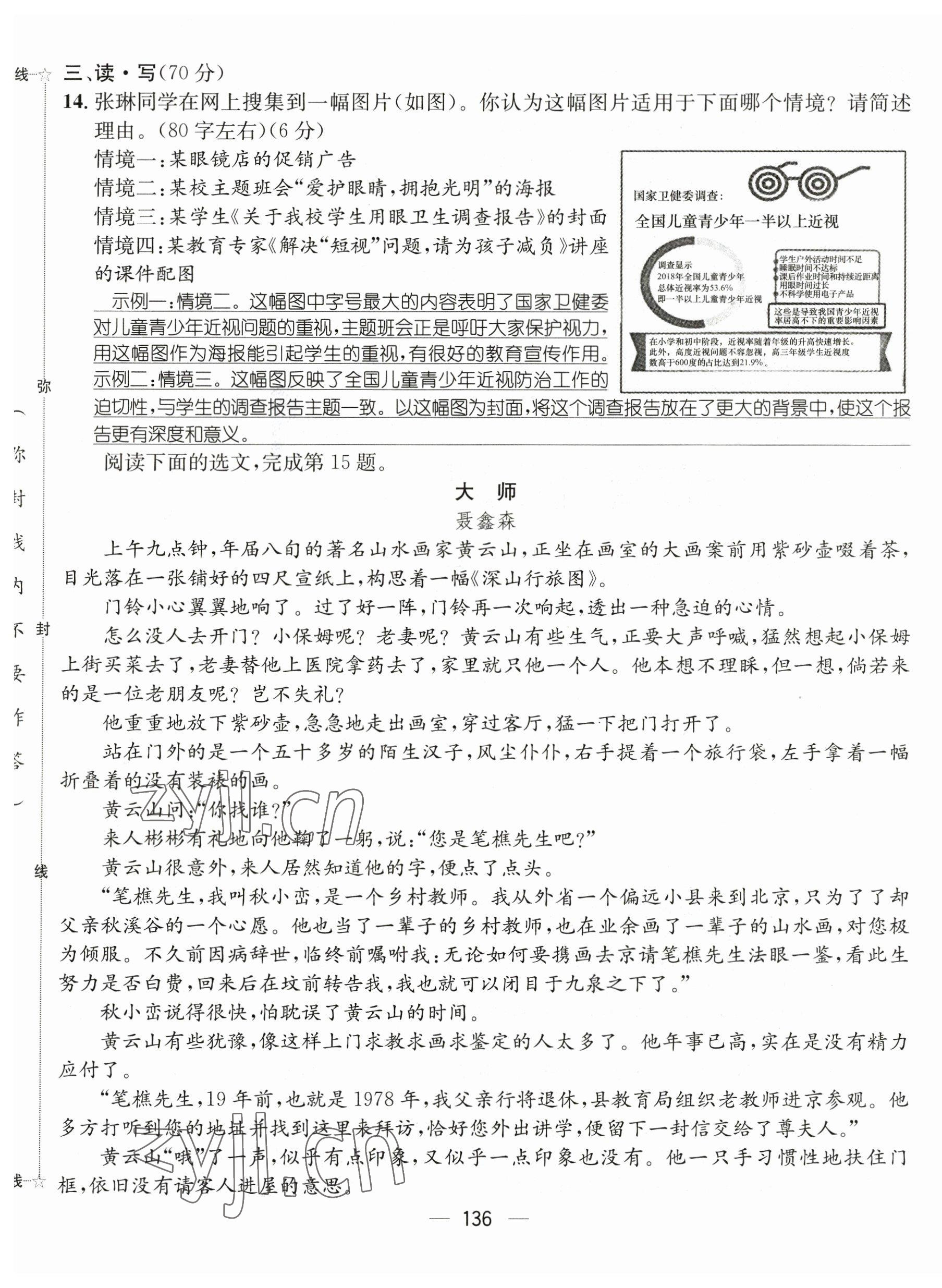 注:目前有些书本章节名称可能整理的还不是很完善,但都是按照顺序排列的,请同学们按照顺序仔细查找。练习册 2023年名师测控九年级语文下册人教版山西专版 答案主要是用来给同学们做完题方便对答案用的,请勿直接抄袭。