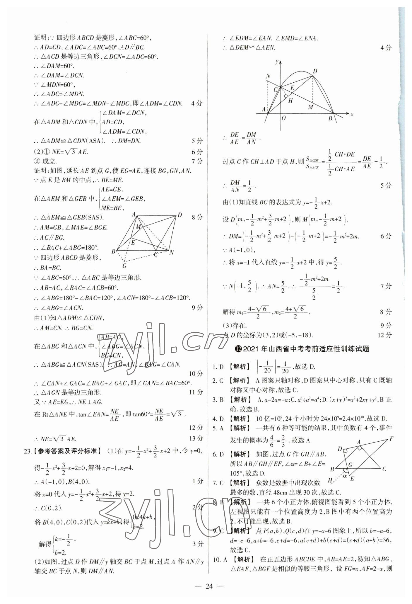 2023年中考方舟试题荟萃及详解数学山西专版