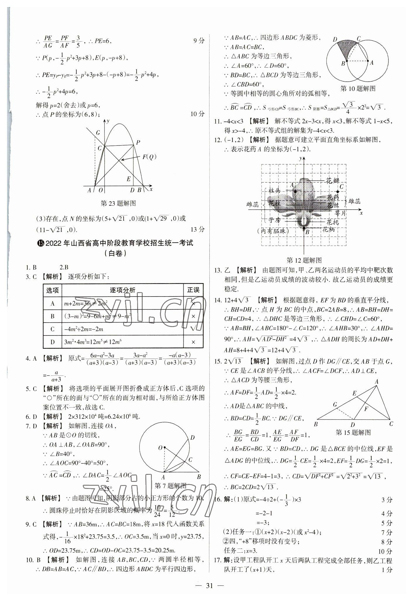 注:目前有些书本章节名称可能整理的还不是很完善,但都是按照顺序排列的,请同学们按照顺序仔细查找。练习册 2023年中考方舟试题荟萃及详解数学山西专版 答案主要是用来给同学们做完题方便对答案用的,请勿直接抄袭。