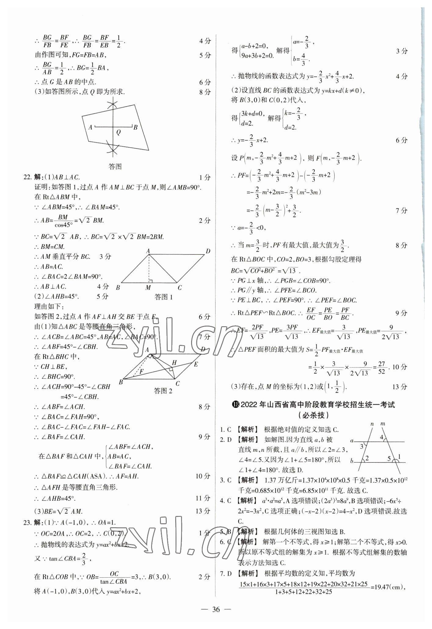 2023年中考方舟试题荟萃及详解数学山西专版