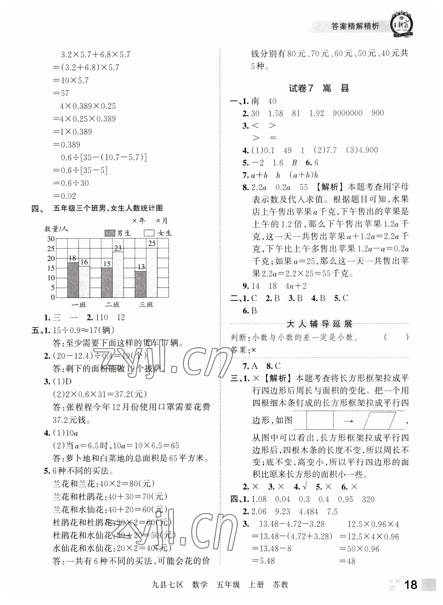 注:目前有些书本章节名称可能整理的还不是很完善,但都是按照顺序排列的,请同学们按照顺序仔细查找。练习册 2022年王朝霞各地期末试卷精选五年级数学上册苏教版洛阳专版 答案主要是用来给同学们做完题方便对答案用的,请勿直接抄袭。