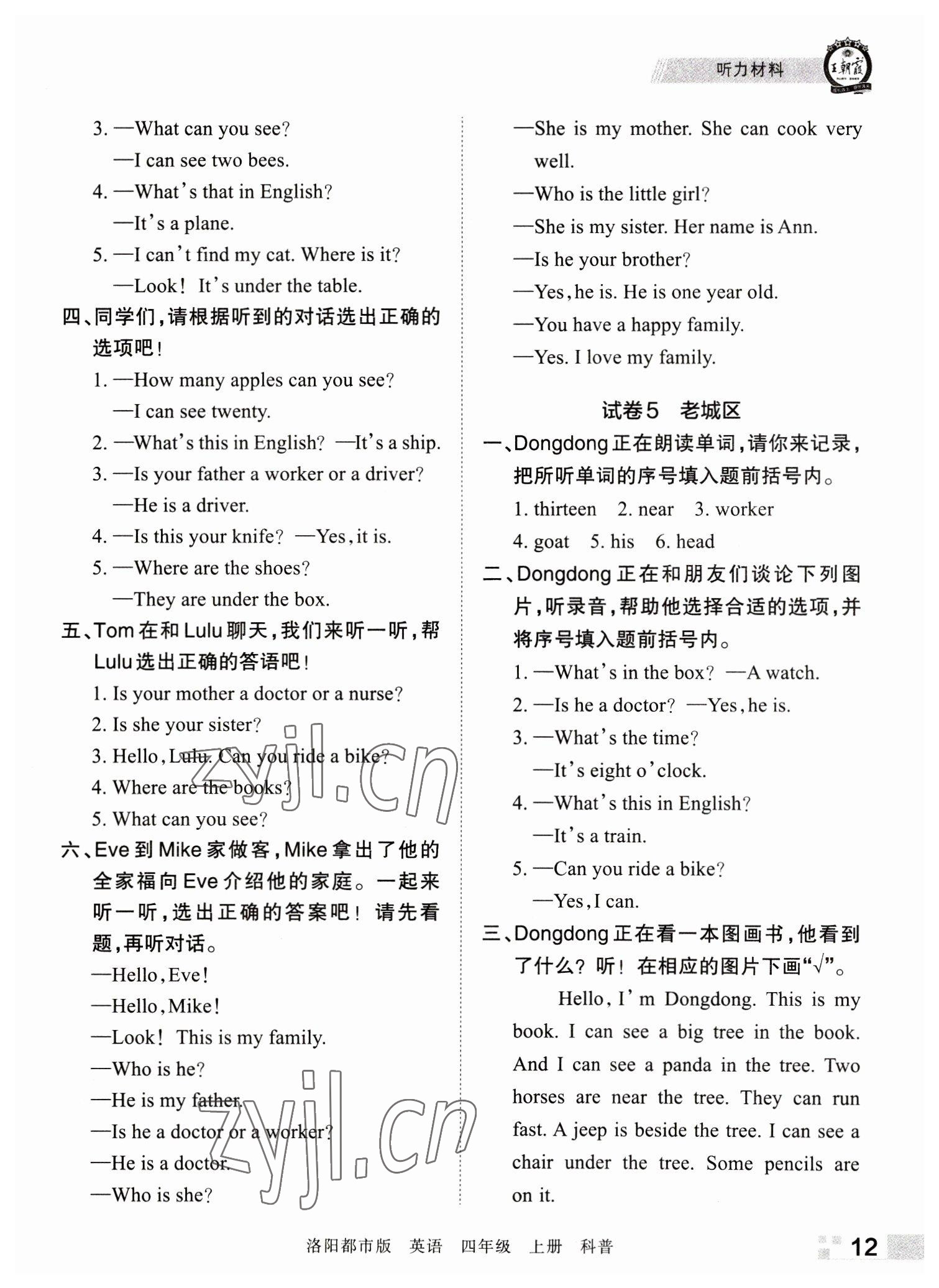 注:目前有些书本章节名称可能整理的还不是很完善,但都是按照顺序排列的,请同学们按照顺序仔细查找。练习册 2022年王朝霞各地期末试卷精选四年级英语上册科普版洛阳专版 答案主要是用来给同学们做完题方便对答案用的,请勿直接抄袭。