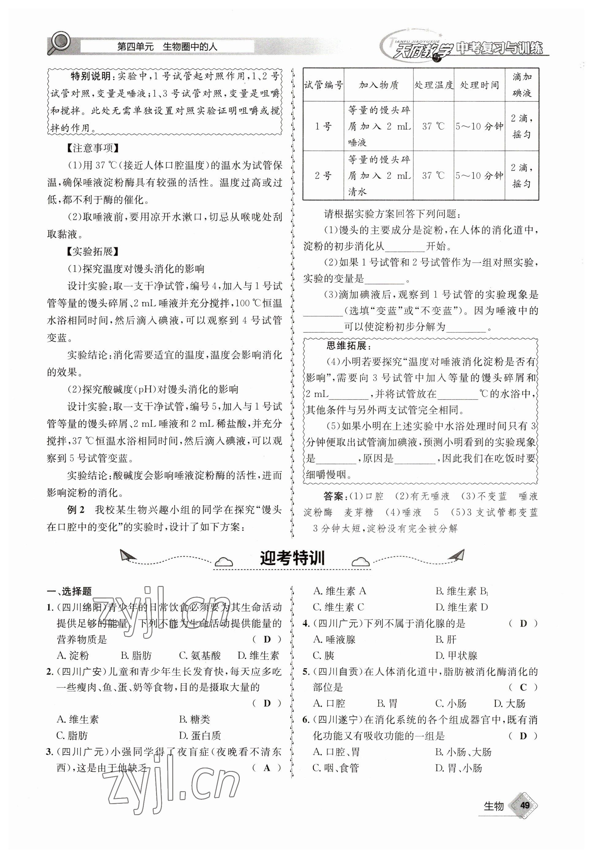 注:目前有些书本章节名称可能整理的还不是很完善,但都是按照顺序排列的,请同学们按照顺序仔细查找。练习册 2023年天府教与学中考复习与训练生物 答案主要是用来给同学们做完题方便对答案用的,请勿直接抄袭。