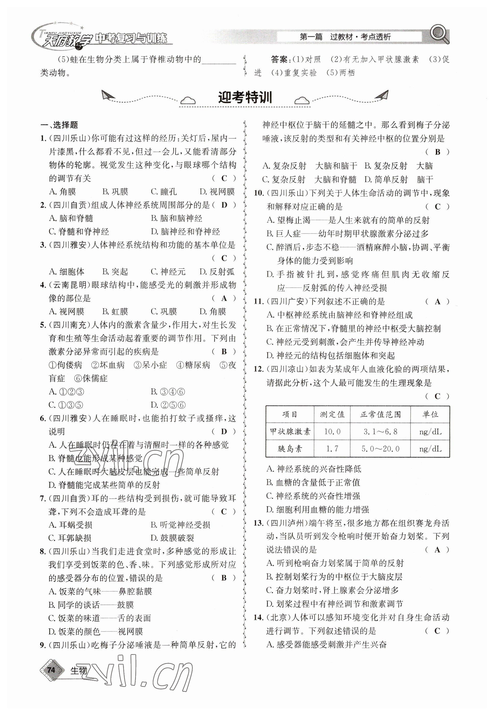 注:目前有些书本章节名称可能整理的还不是很完善,但都是按照顺序排列的,请同学们按照顺序仔细查找。练习册 2023年天府教与学中考复习与训练生物 答案主要是用来给同学们做完题方便对答案用的,请勿直接抄袭。