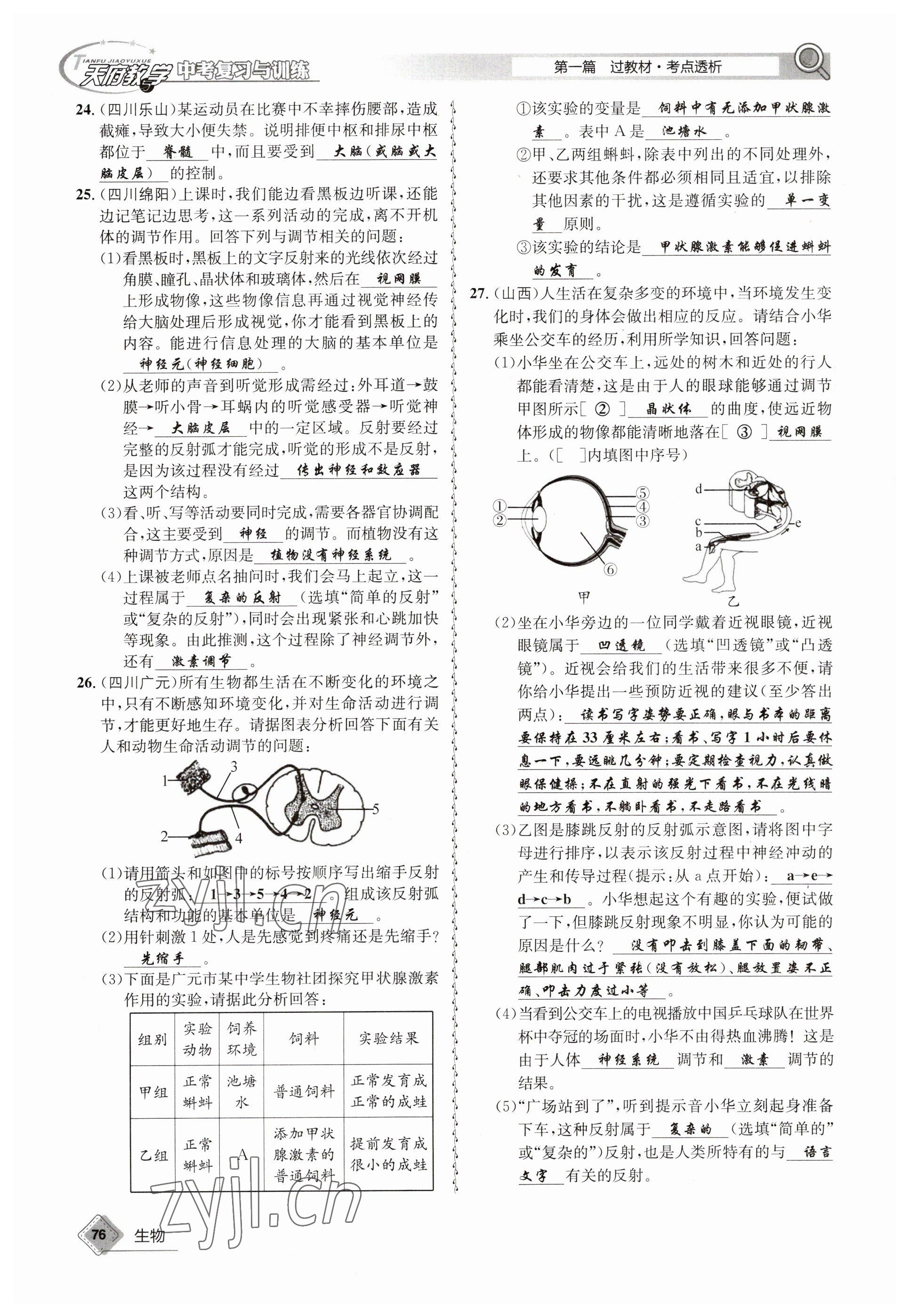 注:目前有些书本章节名称可能整理的还不是很完善,但都是按照顺序排列的,请同学们按照顺序仔细查找。练习册 2023年天府教与学中考复习与训练生物 答案主要是用来给同学们做完题方便对答案用的,请勿直接抄袭。