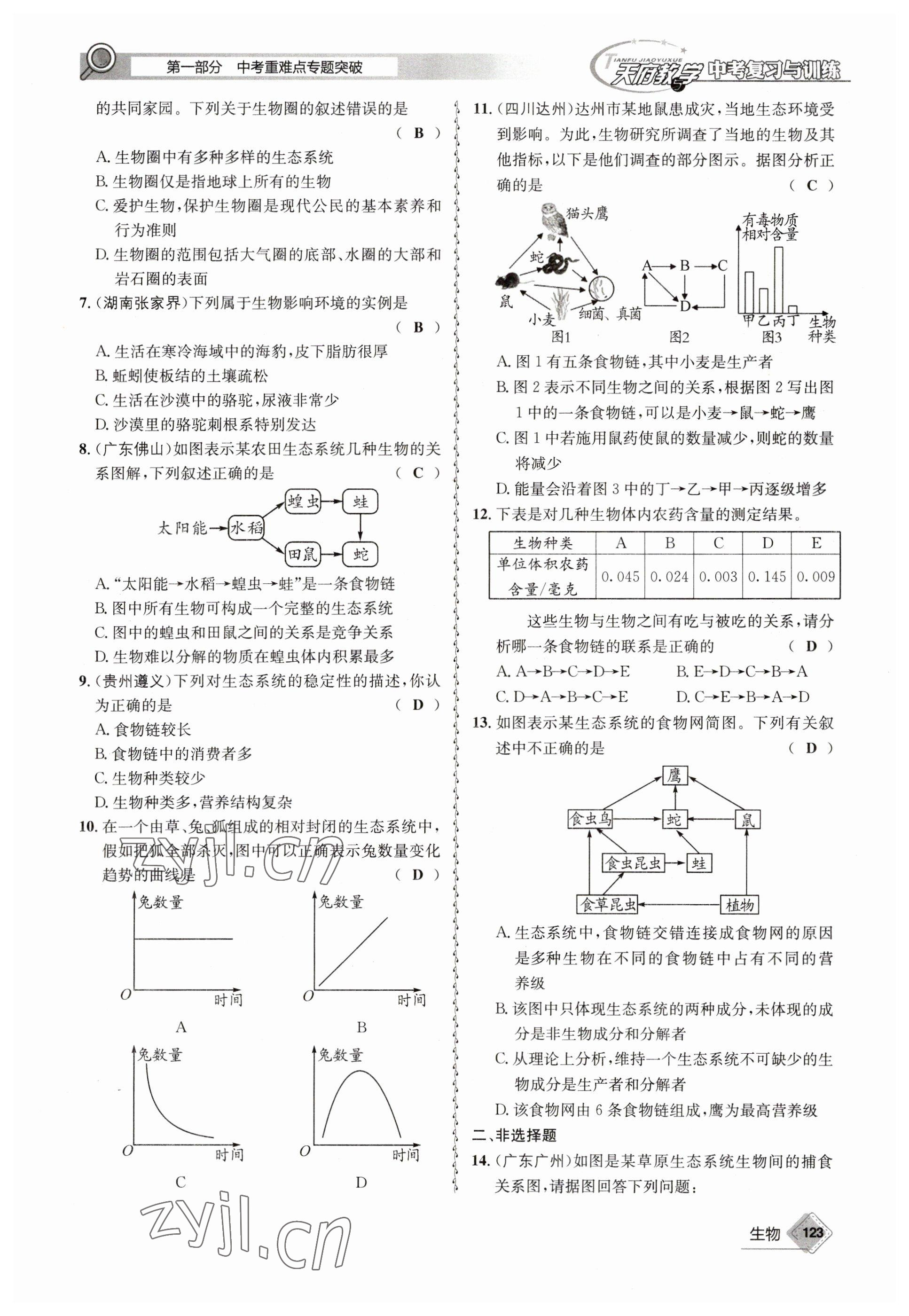 注:目前有些书本章节名称可能整理的还不是很完善,但都是按照顺序排列的,请同学们按照顺序仔细查找。练习册 2023年天府教与学中考复习与训练生物 答案主要是用来给同学们做完题方便对答案用的,请勿直接抄袭。