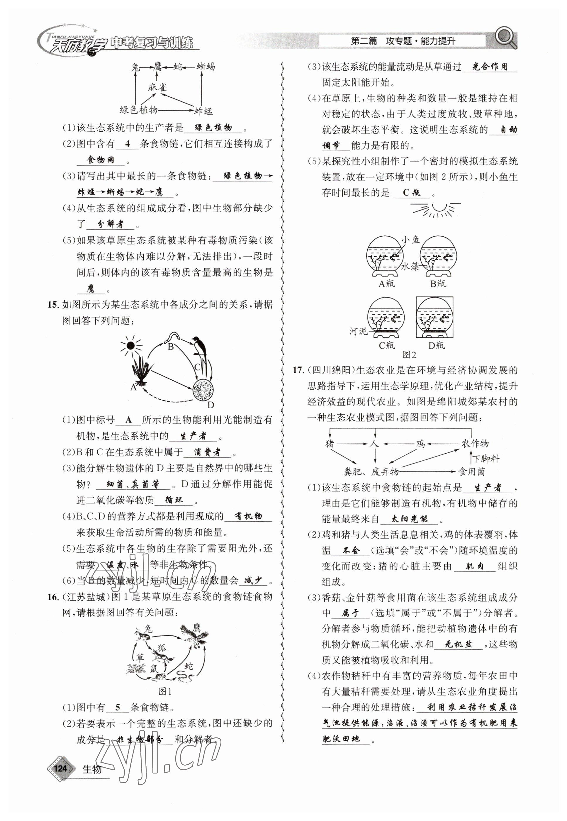 注:目前有些书本章节名称可能整理的还不是很完善,但都是按照顺序排列的,请同学们按照顺序仔细查找。练习册 2023年天府教与学中考复习与训练生物 答案主要是用来给同学们做完题方便对答案用的,请勿直接抄袭。