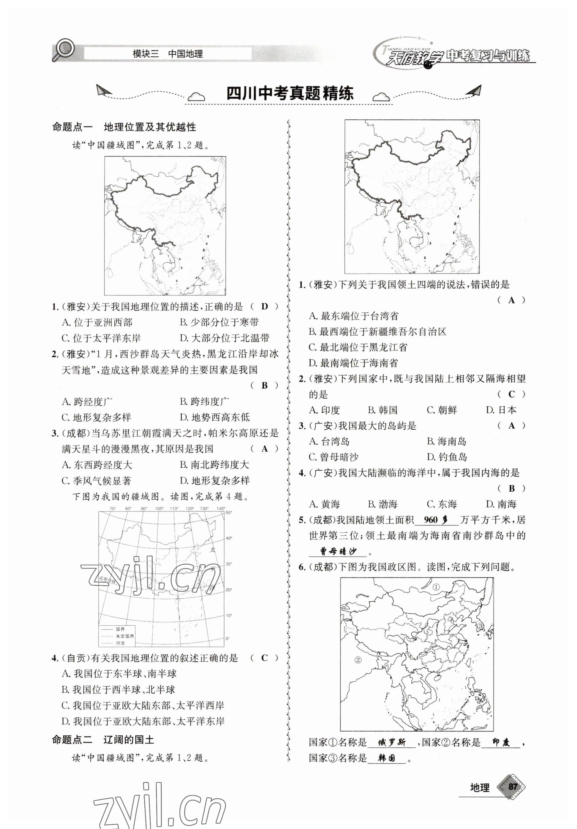 注:目前有些书本章节名称可能整理的还不是很完善,但都是按照顺序排列的,请同学们按照顺序仔细查找。练习册 2023年天府教与学中考复习与训练地理 答案主要是用来给同学们做完题方便对答案用的,请勿直接抄袭。