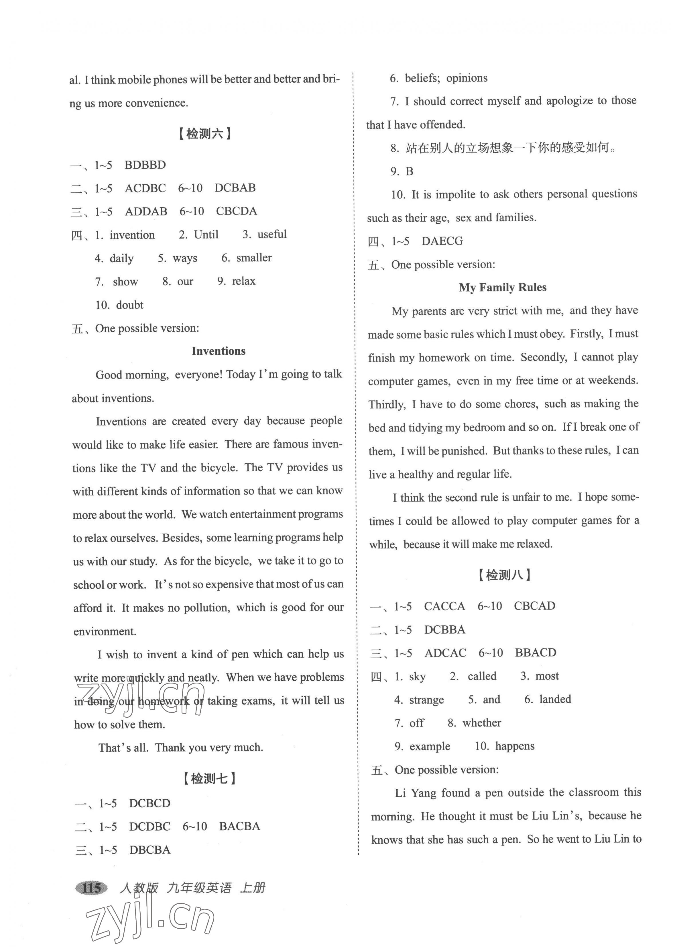 注:目前有些书本章节名称可能整理的还不是很完善,但都是按照顺序排列的,请同学们按照顺序仔细查找。练习册 2022年聚能闯关期末复习冲刺卷九年级英语上册人教版 答案主要是用来给同学们做完题方便对答案用的,请勿直接抄袭。