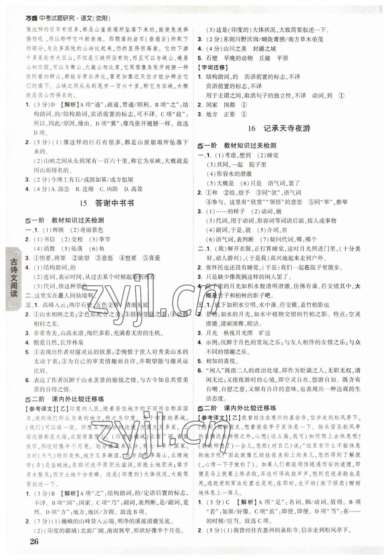 注:目前有些书本章节名称可能整理的还不是很完善,但都是按照顺序排列的,请同学们按照顺序仔细查找。练习册 2023年万唯中考试题研究语文人教版沈阳专版 答案主要是用来给同学们做完题方便对答案用的,请勿直接抄袭。