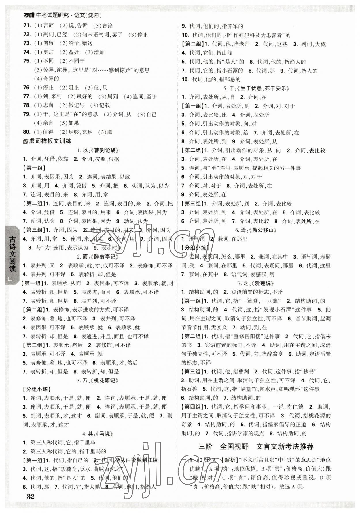 2023年万唯中考试题研究语文人教版沈阳专版
