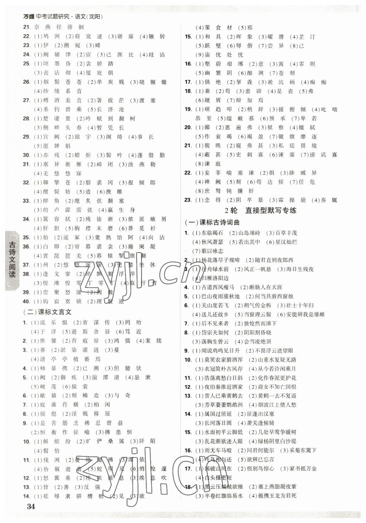 注:目前有些书本章节名称可能整理的还不是很完善,但都是按照顺序排列的,请同学们按照顺序仔细查找。练习册 2023年万唯中考试题研究语文人教版沈阳专版 答案主要是用来给同学们做完题方便对答案用的,请勿直接抄袭。