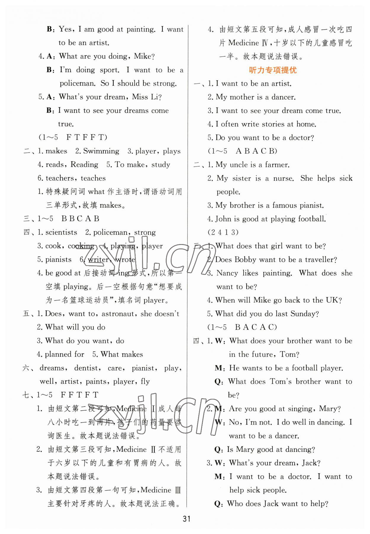 注:目前有些书本章节名称可能整理的还不是很完善,但都是按照顺序排列的,请同学们按照顺序仔细查找。练习册 2023年实验班提优训练六年级英语下册译林版江苏专版 答案主要是用来给同学们做完题方便对答案用的,请勿直接抄袭。