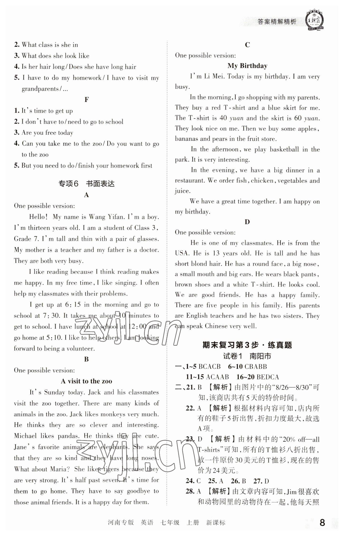注:目前有些书本章节名称可能整理的还不是很完善,但都是按照顺序排列的,请同学们按照顺序仔细查找。练习册 2022年王朝霞各地期末试卷精选七年级英语上册新课标版河南专版 答案主要是用来给同学们做完题方便对答案用的,请勿直接抄袭。