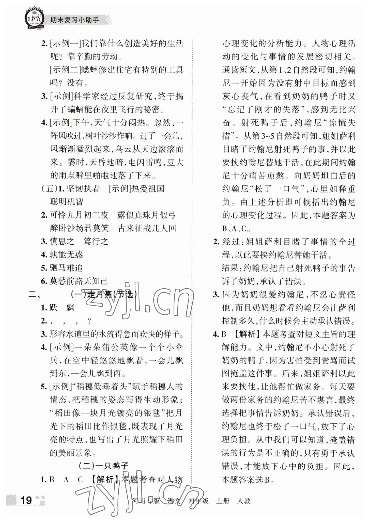 注:目前有些书本章节名称可能整理的还不是很完善,但都是按照顺序排列的,请同学们按照顺序仔细查找。练习册 2022年王朝霞各地期末试卷精选四年级语文上册人教版河南专版 答案主要是用来给同学们做完题方便对答案用的,请勿直接抄袭。