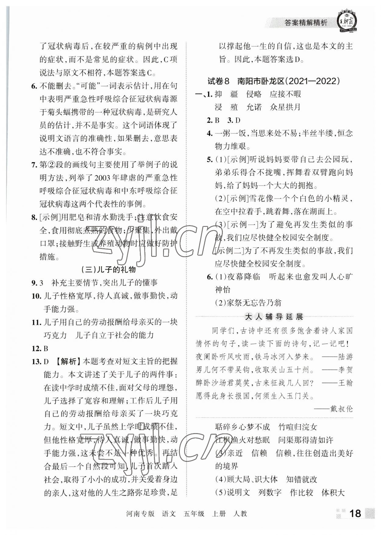 注:目前有些书本章节名称可能整理的还不是很完善,但都是按照顺序排列的,请同学们按照顺序仔细查找。练习册 2022年王朝霞各地期末试卷精选五年级语文上册人教版河南专版 答案主要是用来给同学们做完题方便对答案用的,请勿直接抄袭。