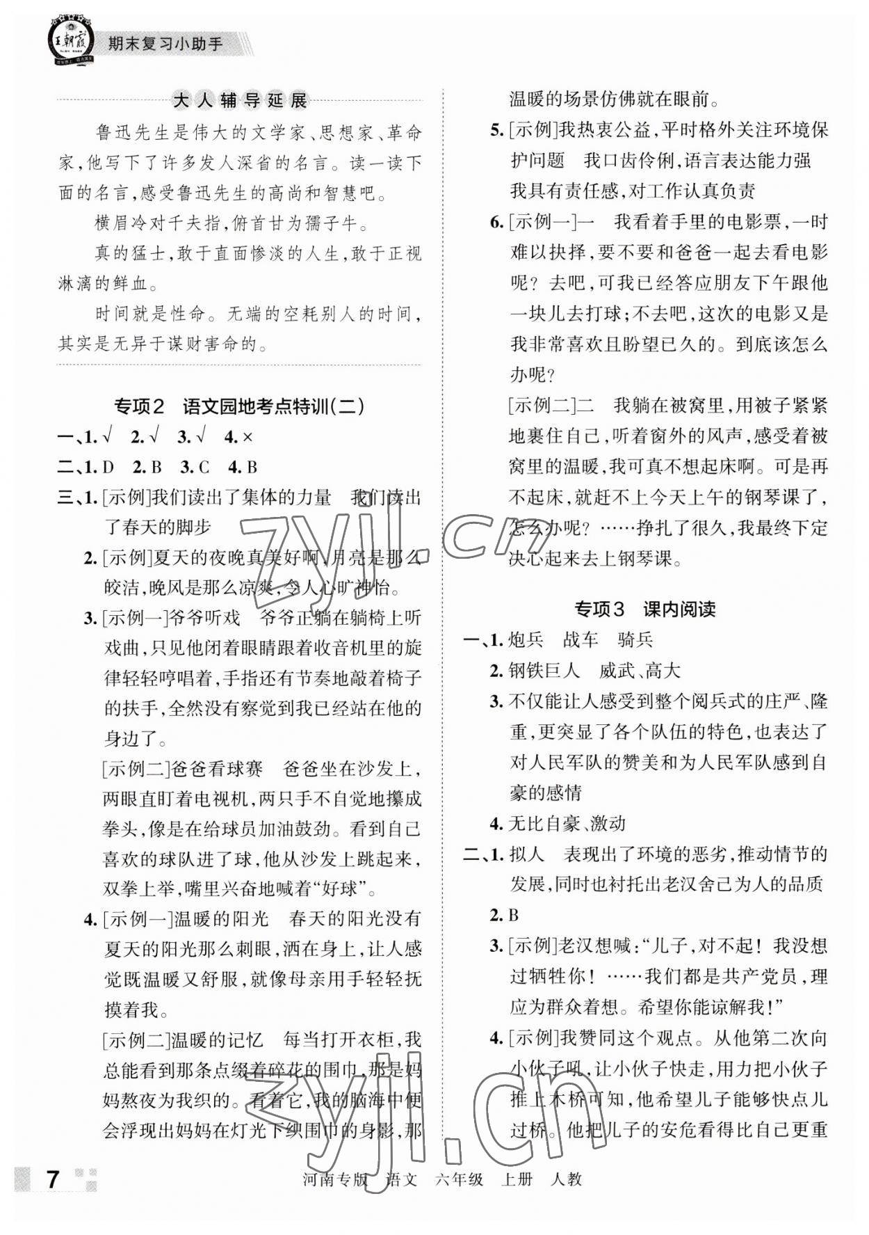 注:目前有些书本章节名称可能整理的还不是很完善,但都是按照顺序排列的,请同学们按照顺序仔细查找。练习册 2022年王朝霞各地期末试卷精选六年级语文上册人教版河南专版 答案主要是用来给同学们做完题方便对答案用的,请勿直接抄袭。
