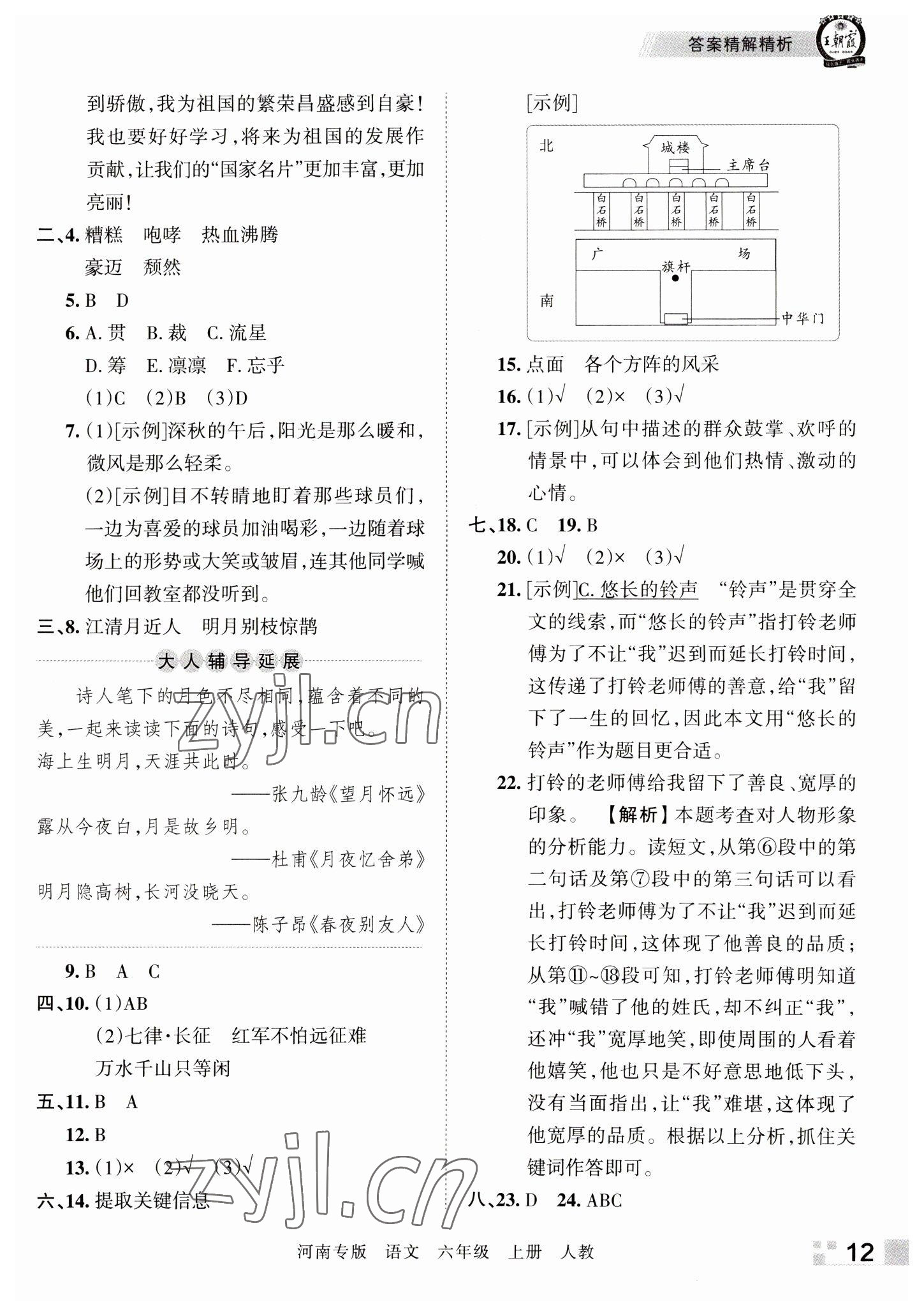 注:目前有些书本章节名称可能整理的还不是很完善,但都是按照顺序排列的,请同学们按照顺序仔细查找。练习册 2022年王朝霞各地期末试卷精选六年级语文上册人教版河南专版 答案主要是用来给同学们做完题方便对答案用的,请勿直接抄袭。