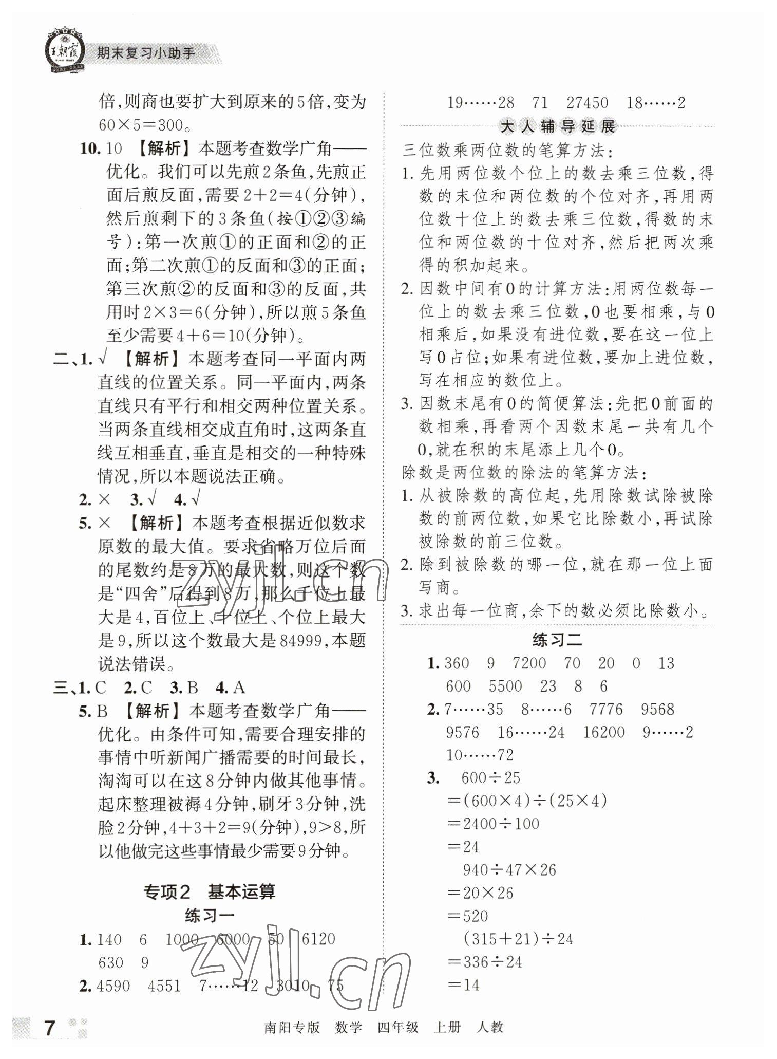 注:目前有些书本章节名称可能整理的还不是很完善,但都是按照顺序排列的,请同学们按照顺序仔细查找。练习册 2022年王朝霞期末真题精编四年级数学上册人教版南阳专版 答案主要是用来给同学们做完题方便对答案用的,请勿直接抄袭。