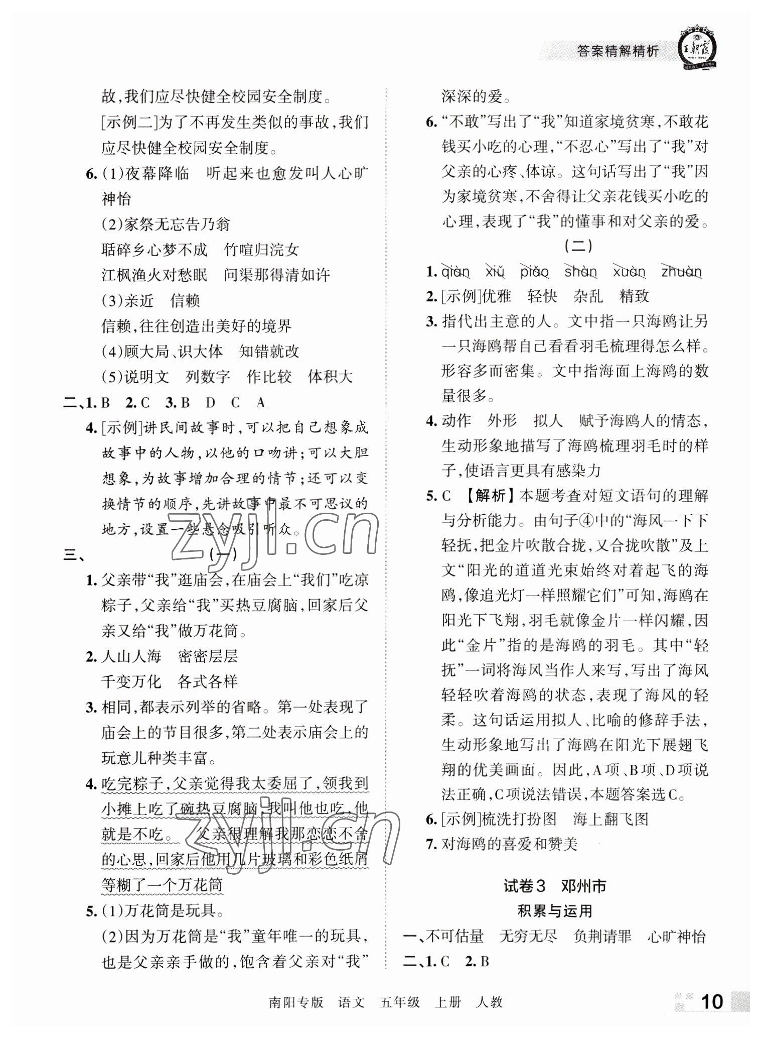 注:目前有些书本章节名称可能整理的还不是很完善,但都是按照顺序排列的,请同学们按照顺序仔细查找。练习册 2022年王朝霞期末真题精编五年级语文上册人教版南阳专版 答案主要是用来给同学们做完题方便对答案用的,请勿直接抄袭。
