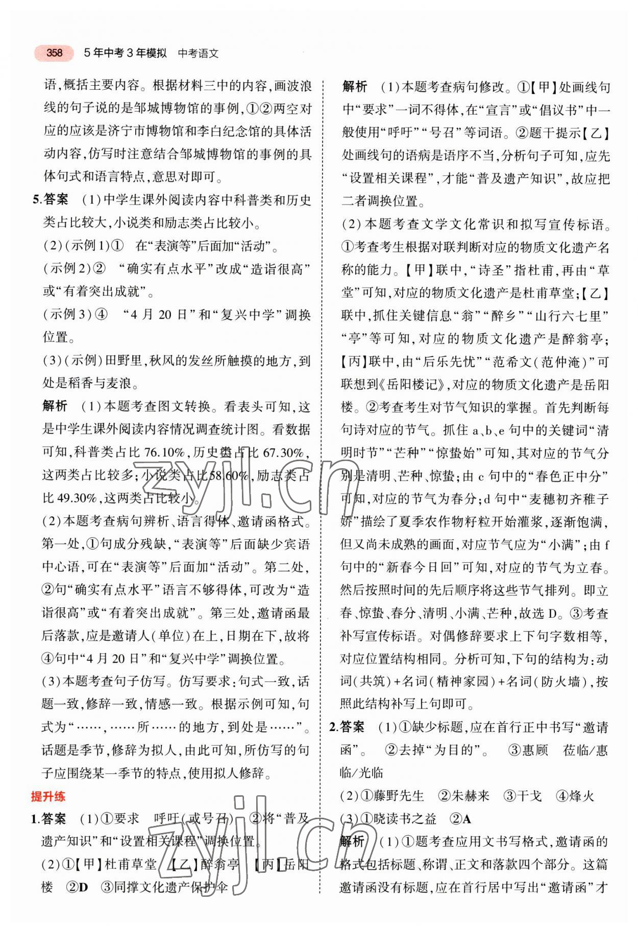 注:目前有些书本章节名称可能整理的还不是很完善,但都是按照顺序排列的,请同学们按照顺序仔细查找。练习册 2023年5年中考3年模拟语文中考安徽专版 答案主要是用来给同学们做完题方便对答案用的,请勿直接抄袭。
