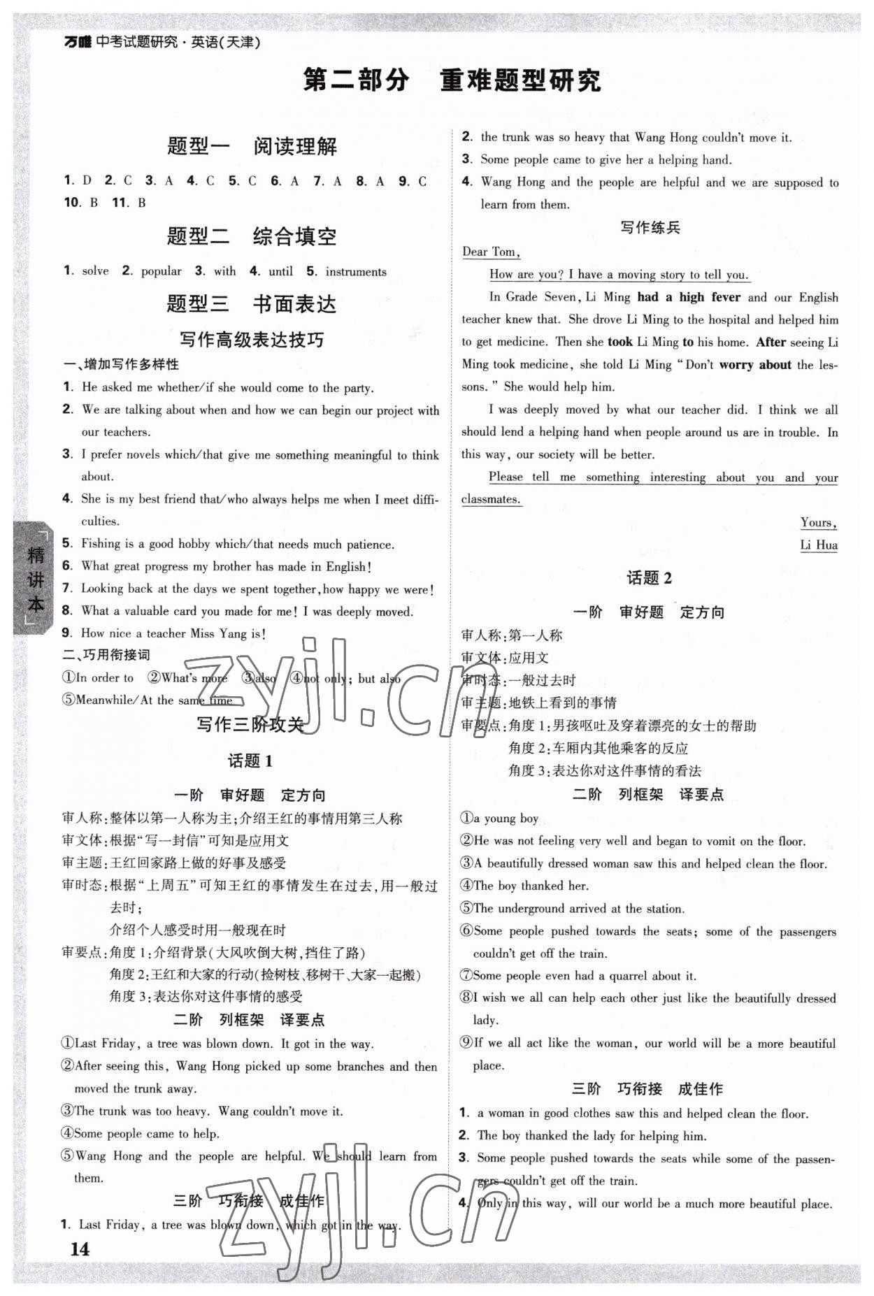 注:目前有些书本章节名称可能整理的还不是很完善,但都是按照顺序排列的,请同学们按照顺序仔细查找。练习册 2023年万唯中考试题研究英语天津专版 答案主要是用来给同学们做完题方便对答案用的,请勿直接抄袭。