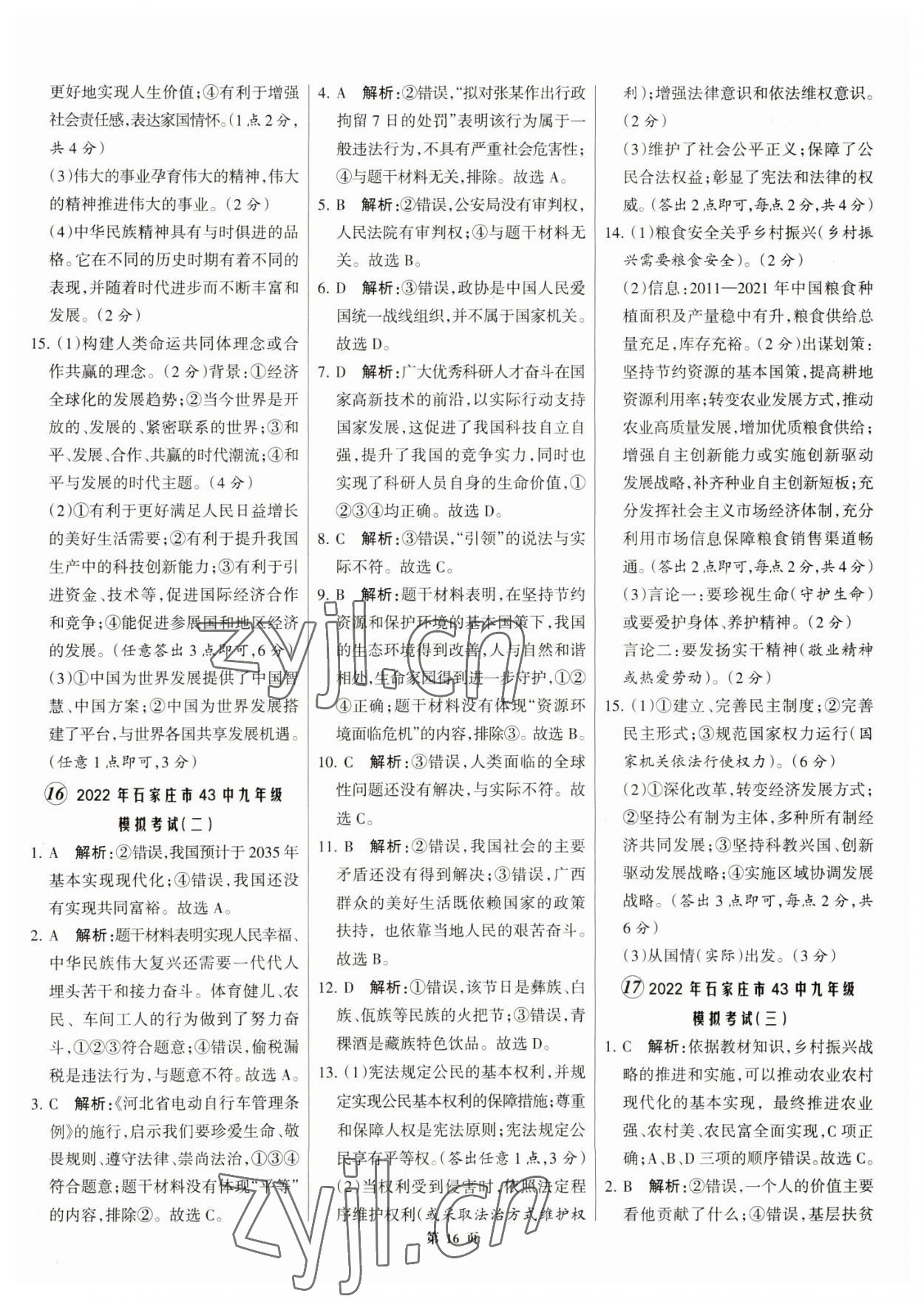 2023年全优中考全国中考试题精选精析道德与法治人教版河北专版