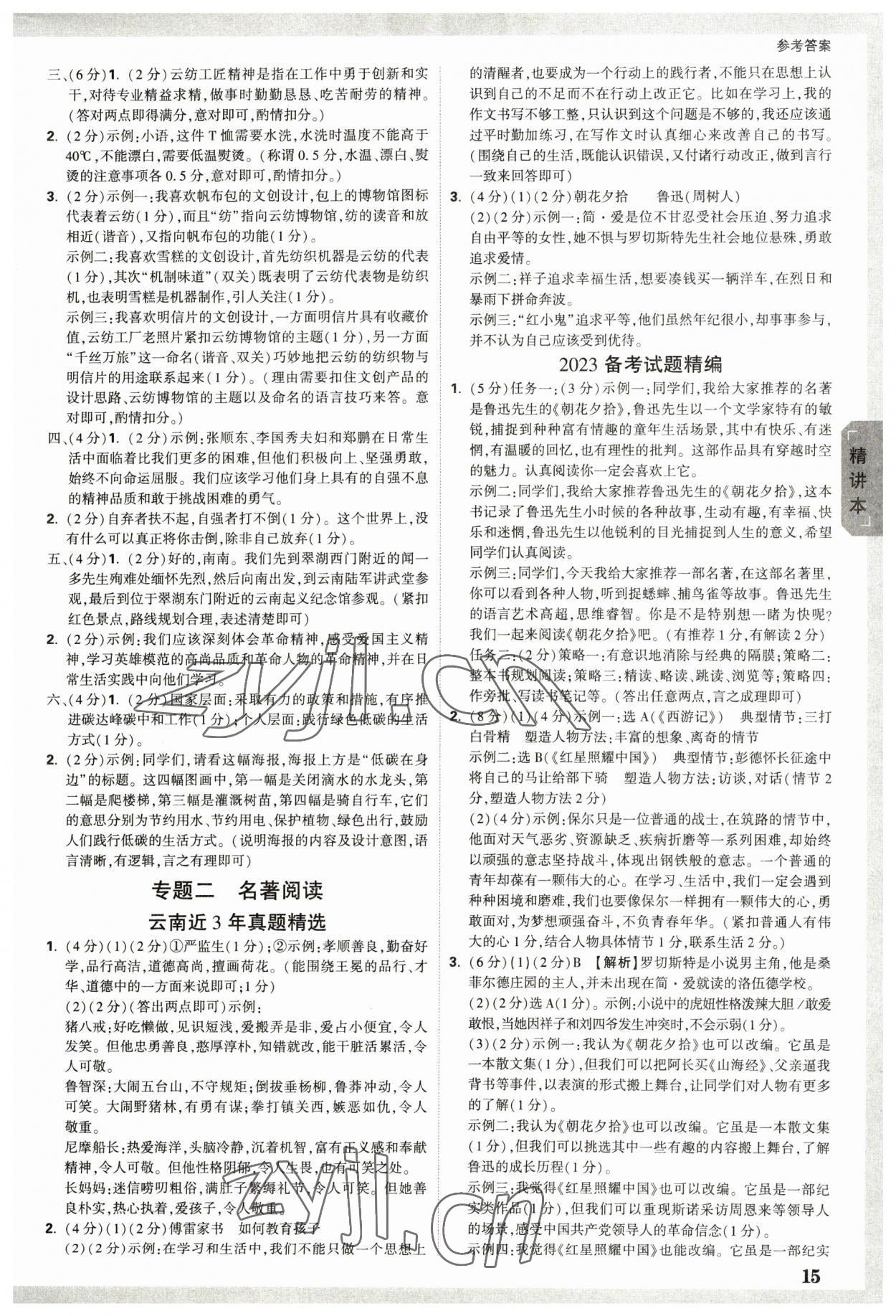 注:目前有些书本章节名称可能整理的还不是很完善,但都是按照顺序排列的,请同学们按照顺序仔细查找。练习册 2023年万唯中考试题研究语文云南专版 答案主要是用来给同学们做完题方便对答案用的,请勿直接抄袭。