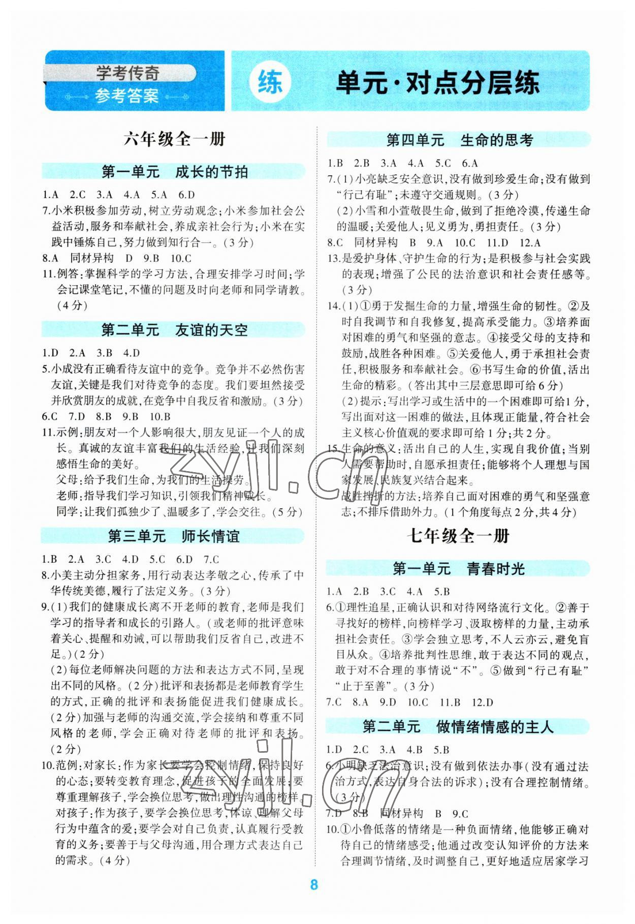 注:目前有些书本章节名称可能整理的还不是很完善,但都是按照顺序排列的,请同学们按照顺序仔细查找。练习册 2023年学考传奇道德与法治五四专用 答案主要是用来给同学们做完题方便对答案用的,请勿直接抄袭。