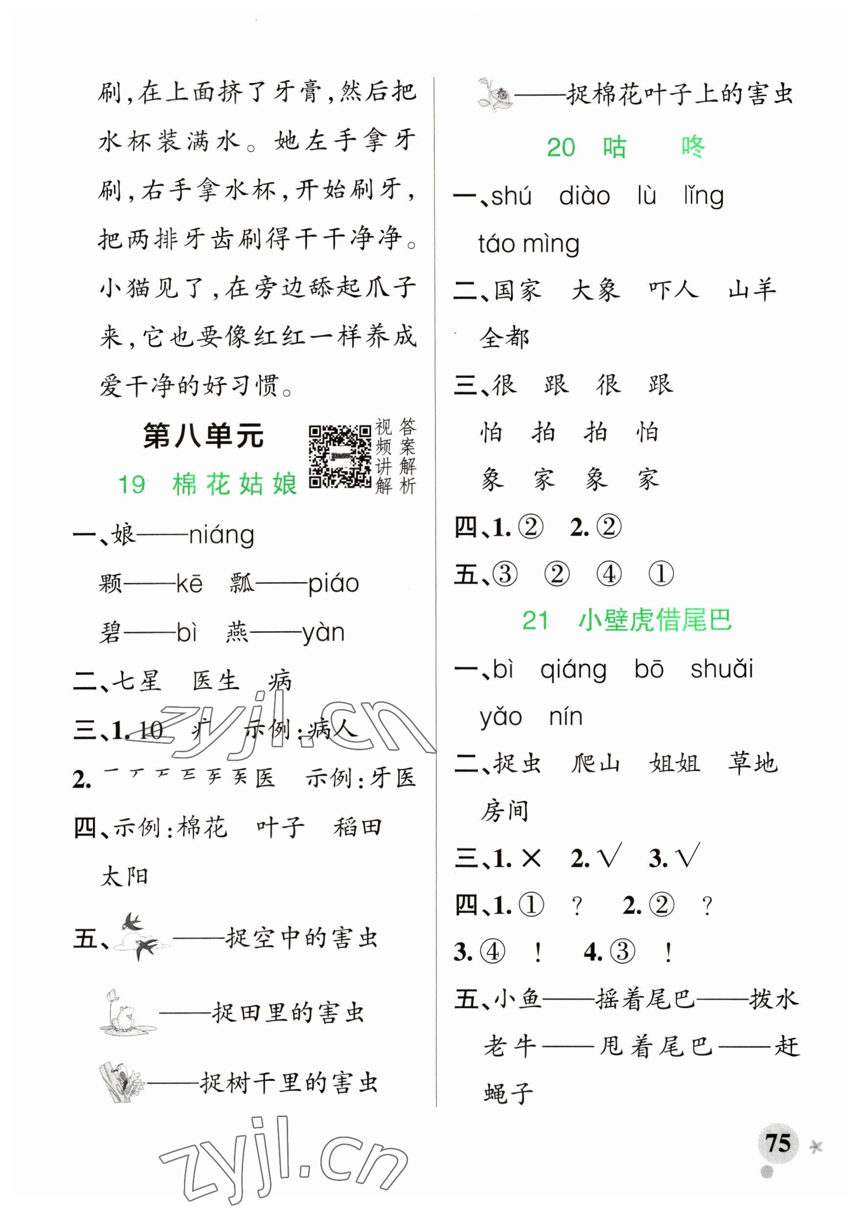 注:目前有些书本章节名称可能整理的还不是很完善,但都是按照顺序排列的,请同学们按照顺序仔细查找。练习册 2023年小学学霸作业本一年级语文下册人教版五四制 答案主要是用来给同学们做完题方便对答案用的,请勿直接抄袭。
